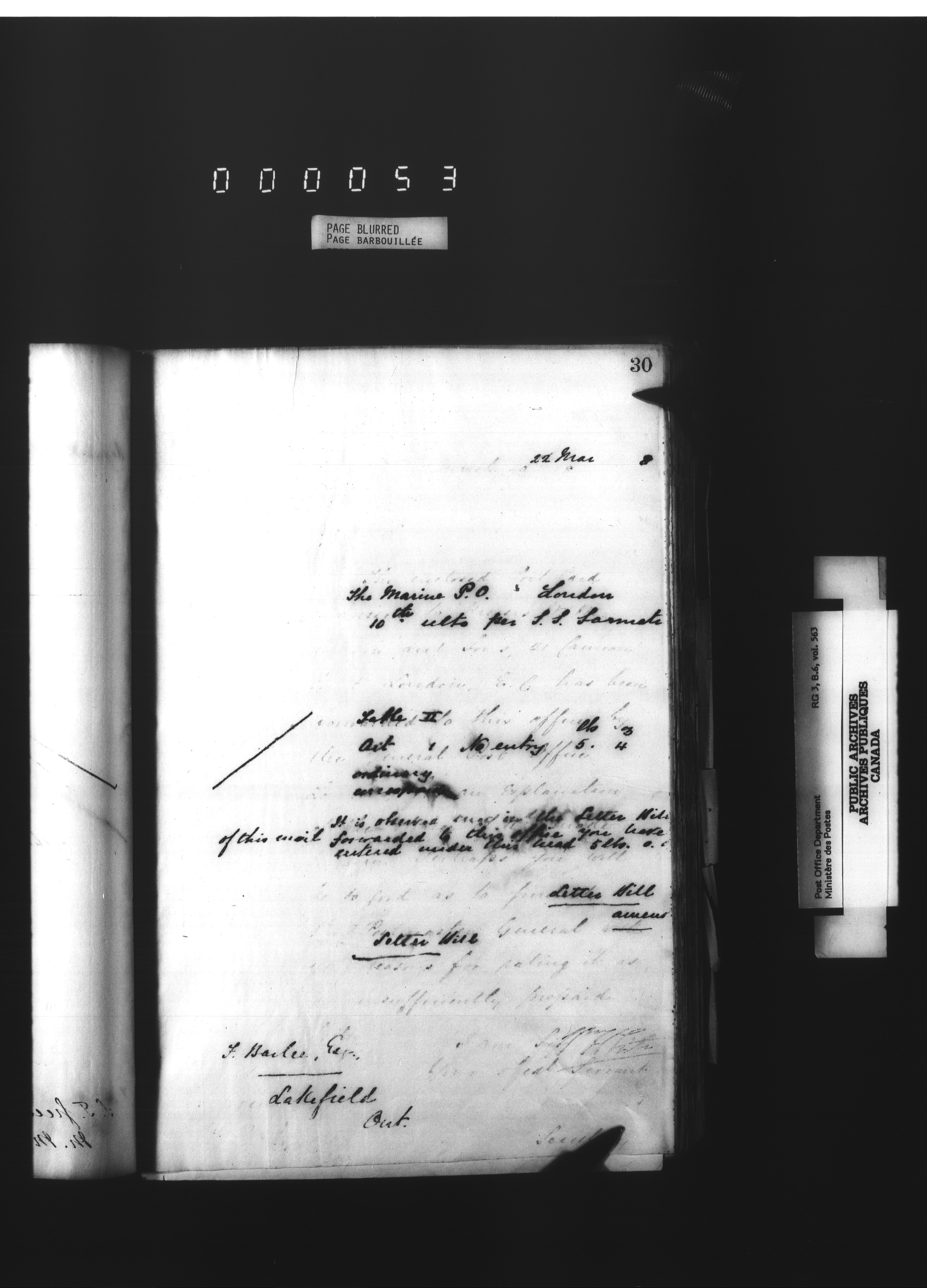 Deputy Postmaster General : Correspondence addressed to the Marine Mail Officers - 4537