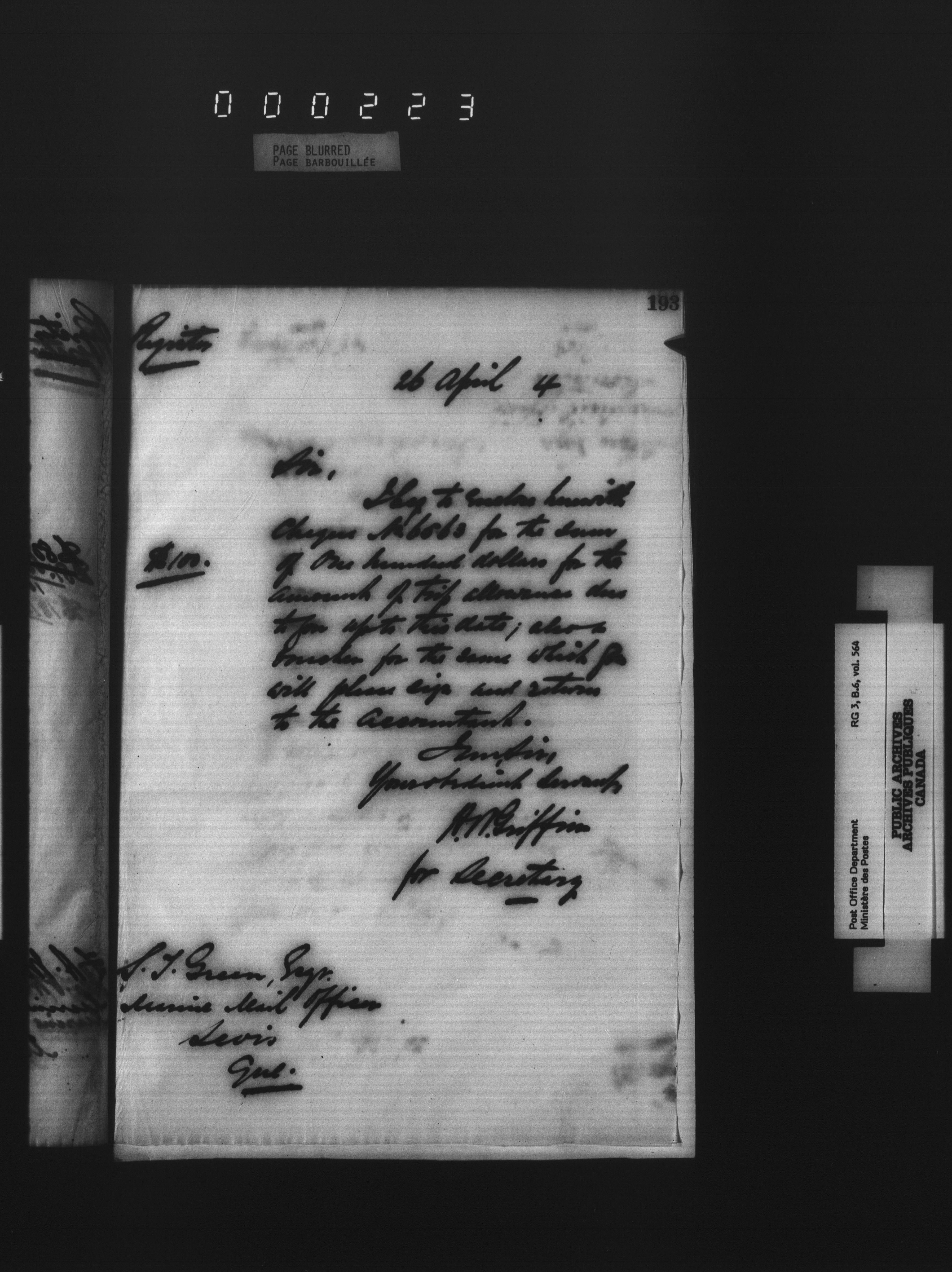 Deputy Postmaster General : Correspondence addressed to the Marine Mail Officers - 4537