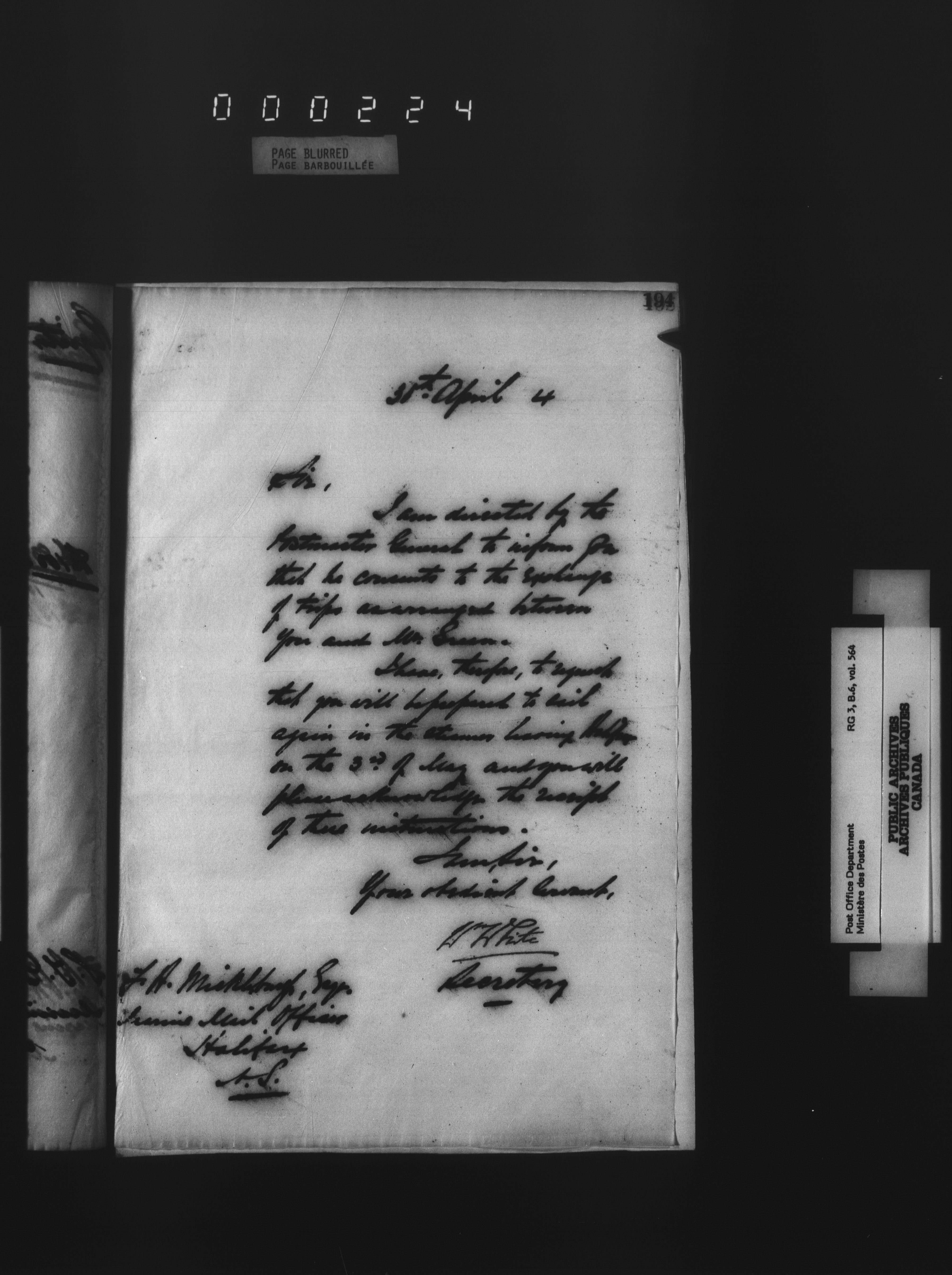 Deputy Postmaster General : Correspondence addressed to the Marine Mail Officers - 4537