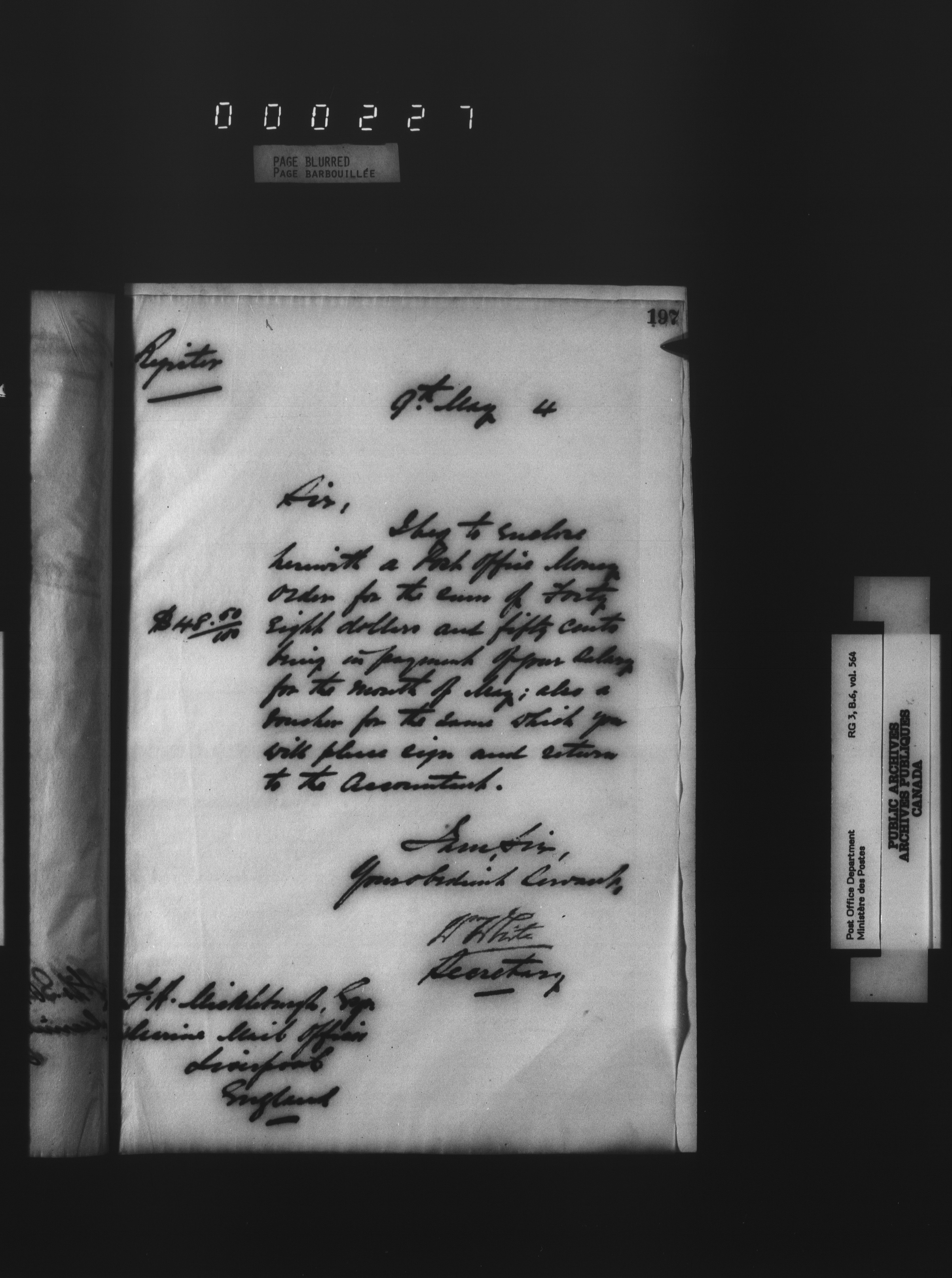 Deputy Postmaster General : Correspondence addressed to the Marine Mail Officers - 4537