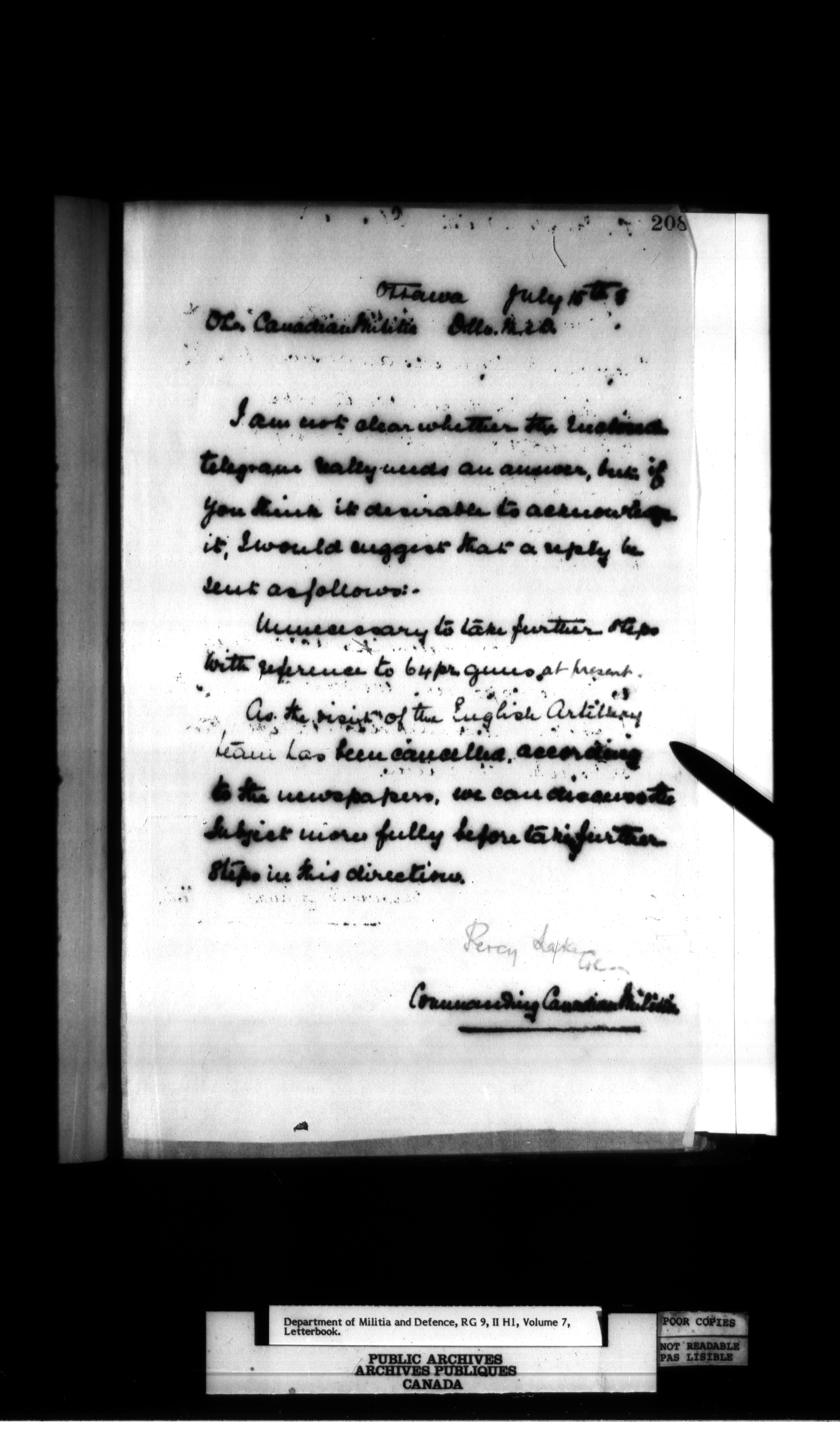 Militia and Defence : Records of artillery units at Quebec - 454