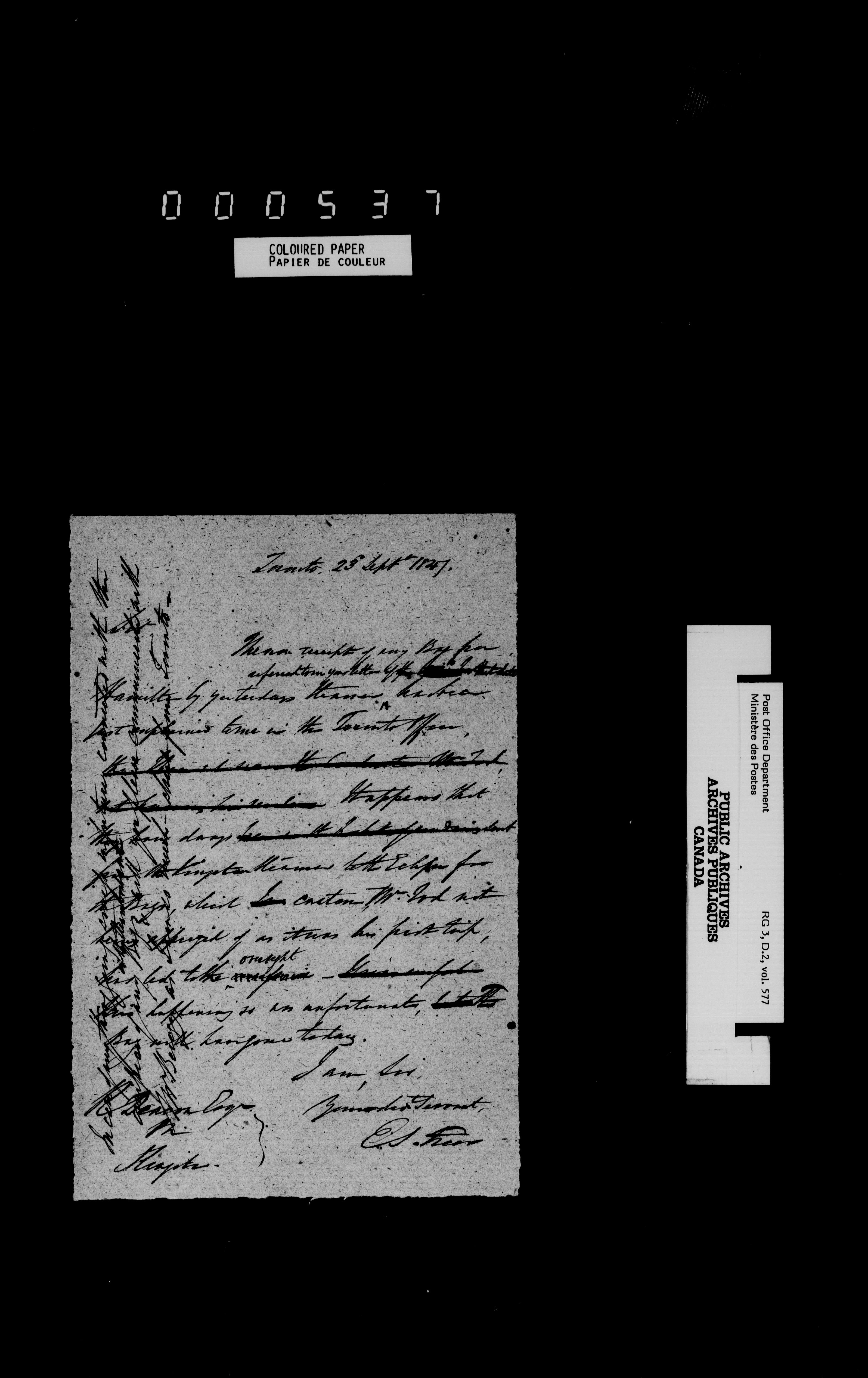 Post Office Inspector's Office, Canada West : T-4540