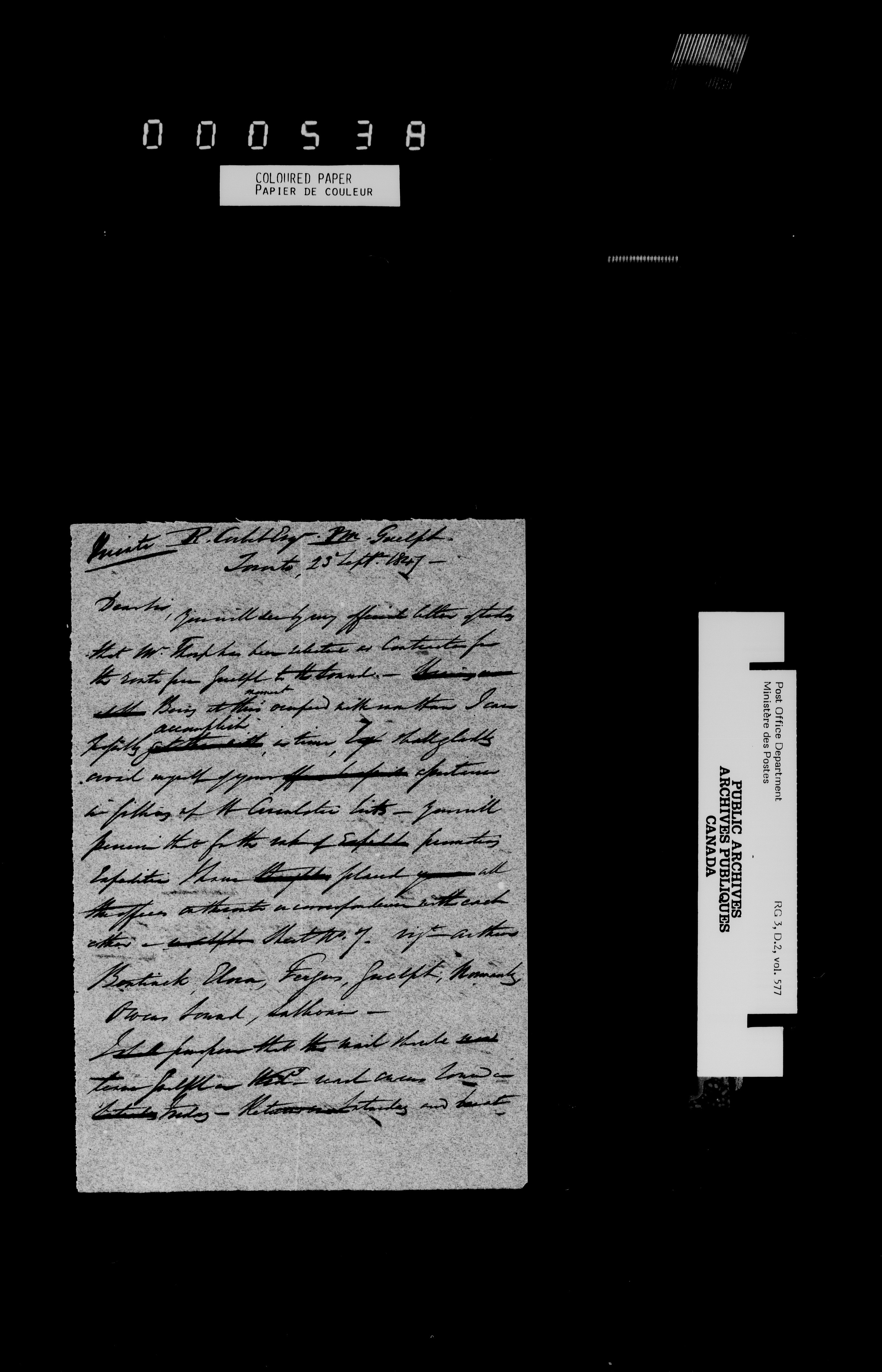 Post Office Inspector's Office, Canada West - 4540