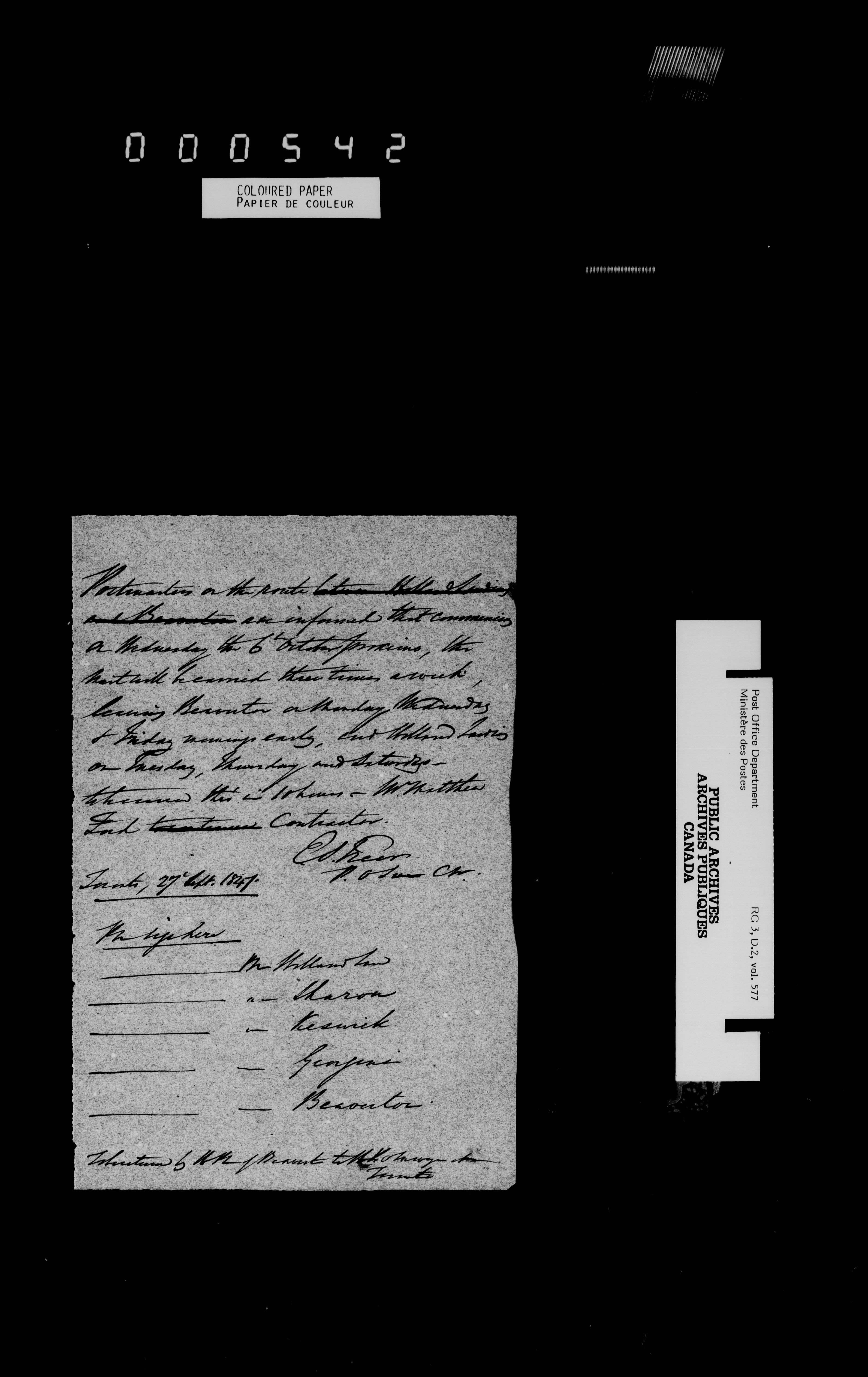 Post Office Inspector's Office, Canada West : T-4540