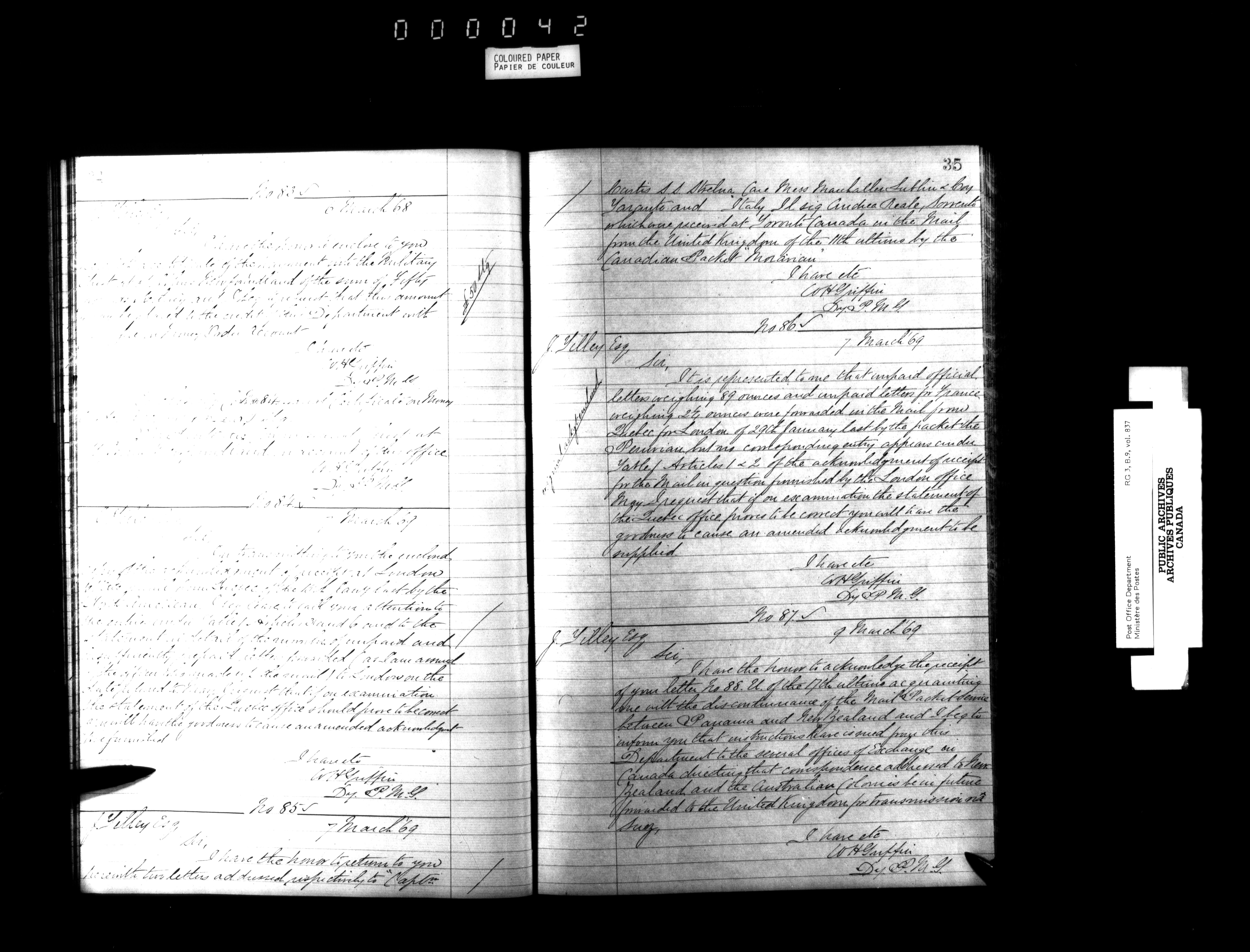 Deputy Postmaster General : International correspondence sent : T-4549