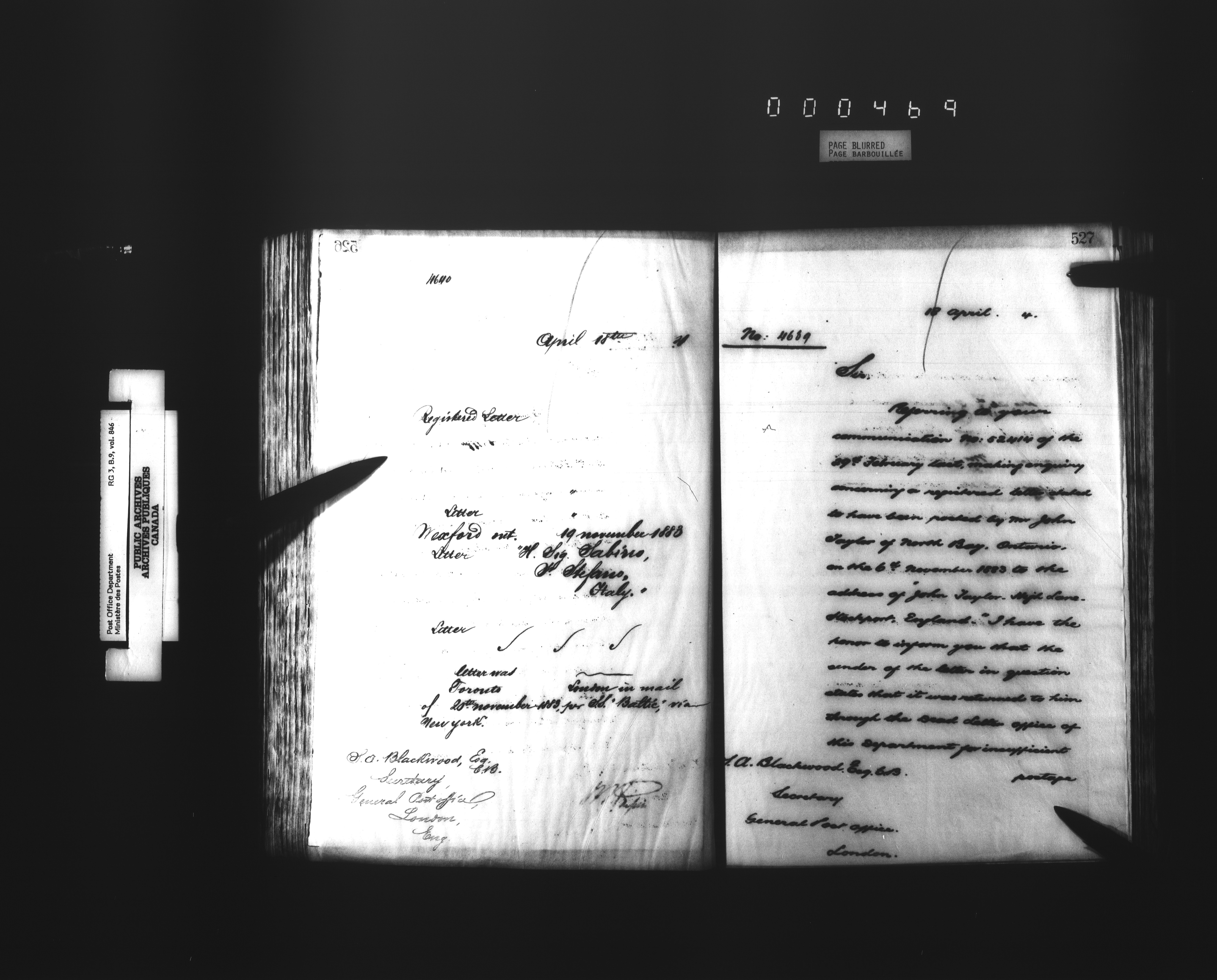 Deputy Postmaster General : International correspondence sent - 4556