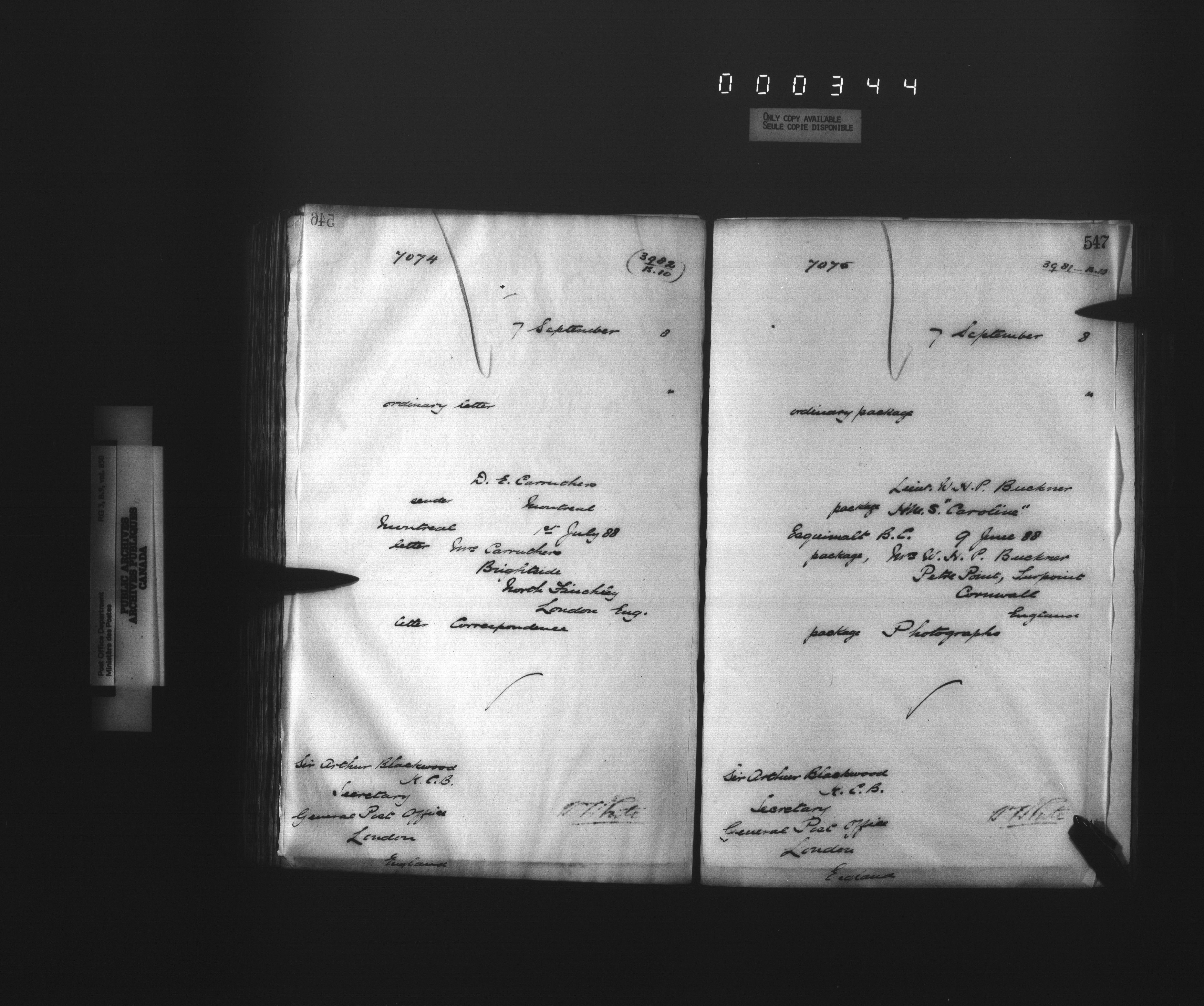 Deputy Postmaster General : International correspondence sent - 4558