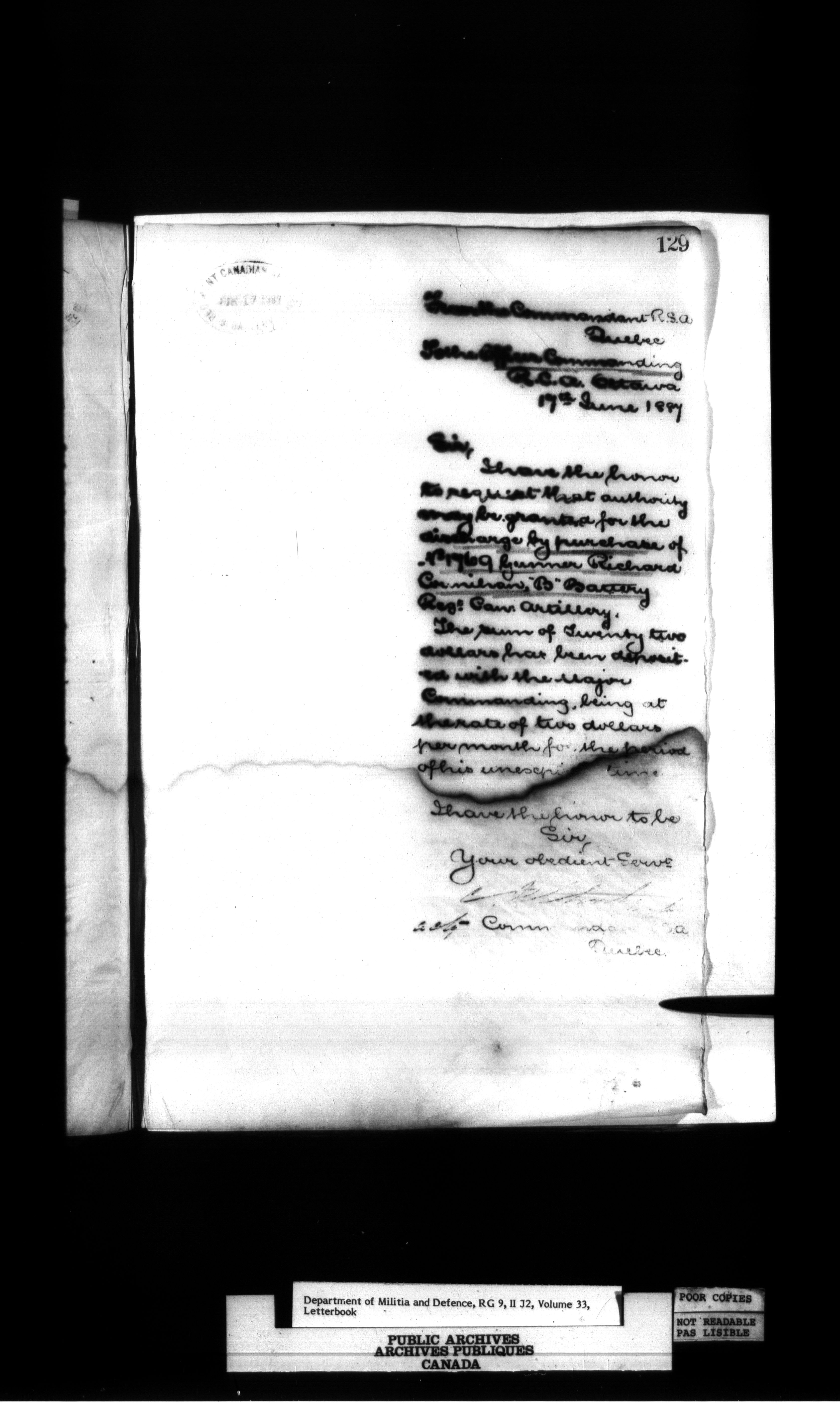Militia and Defence : Records of artillery units at Quebec : T-456