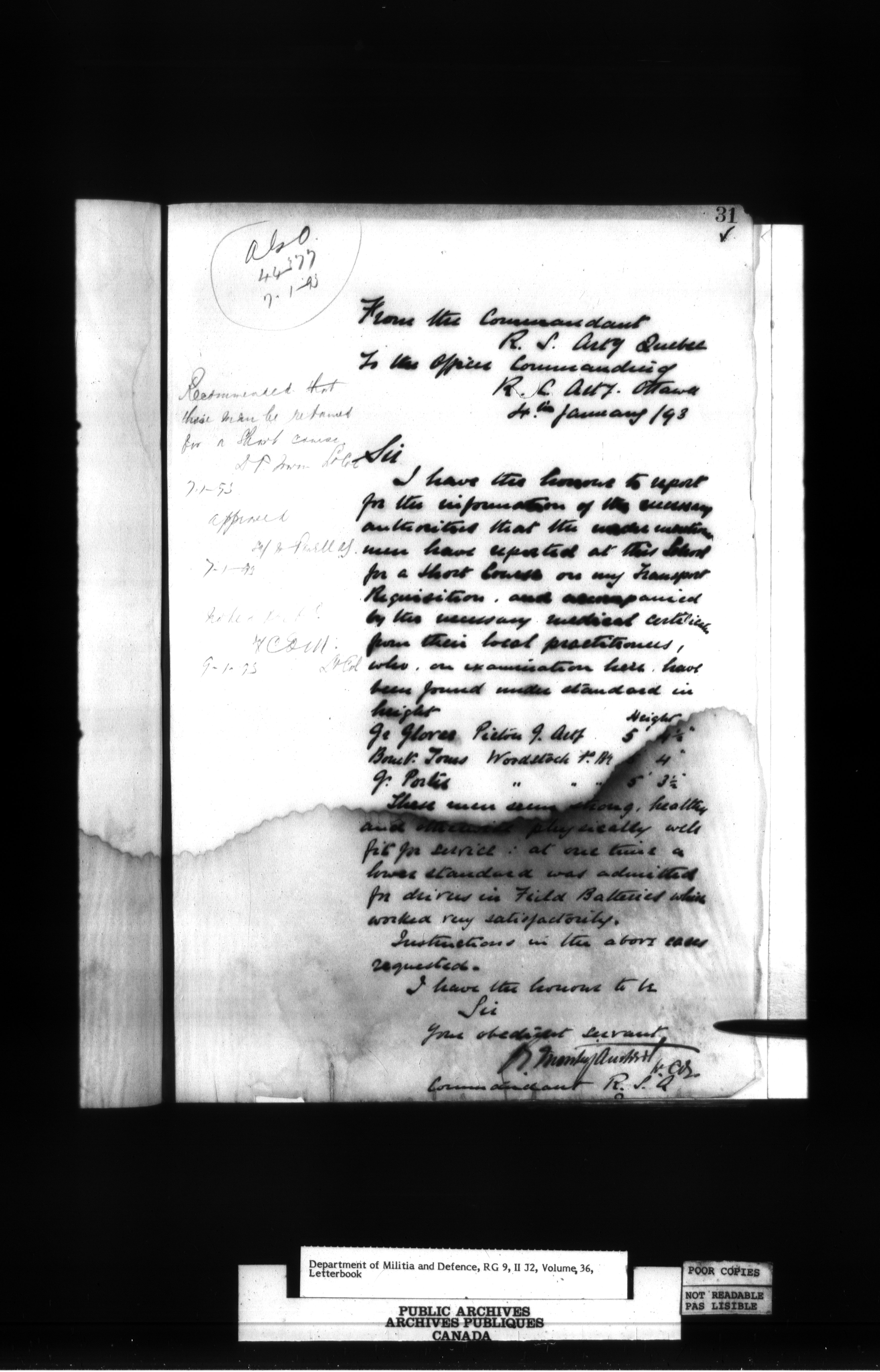 Militia and Defence : Records of artillery units at Quebec - 458