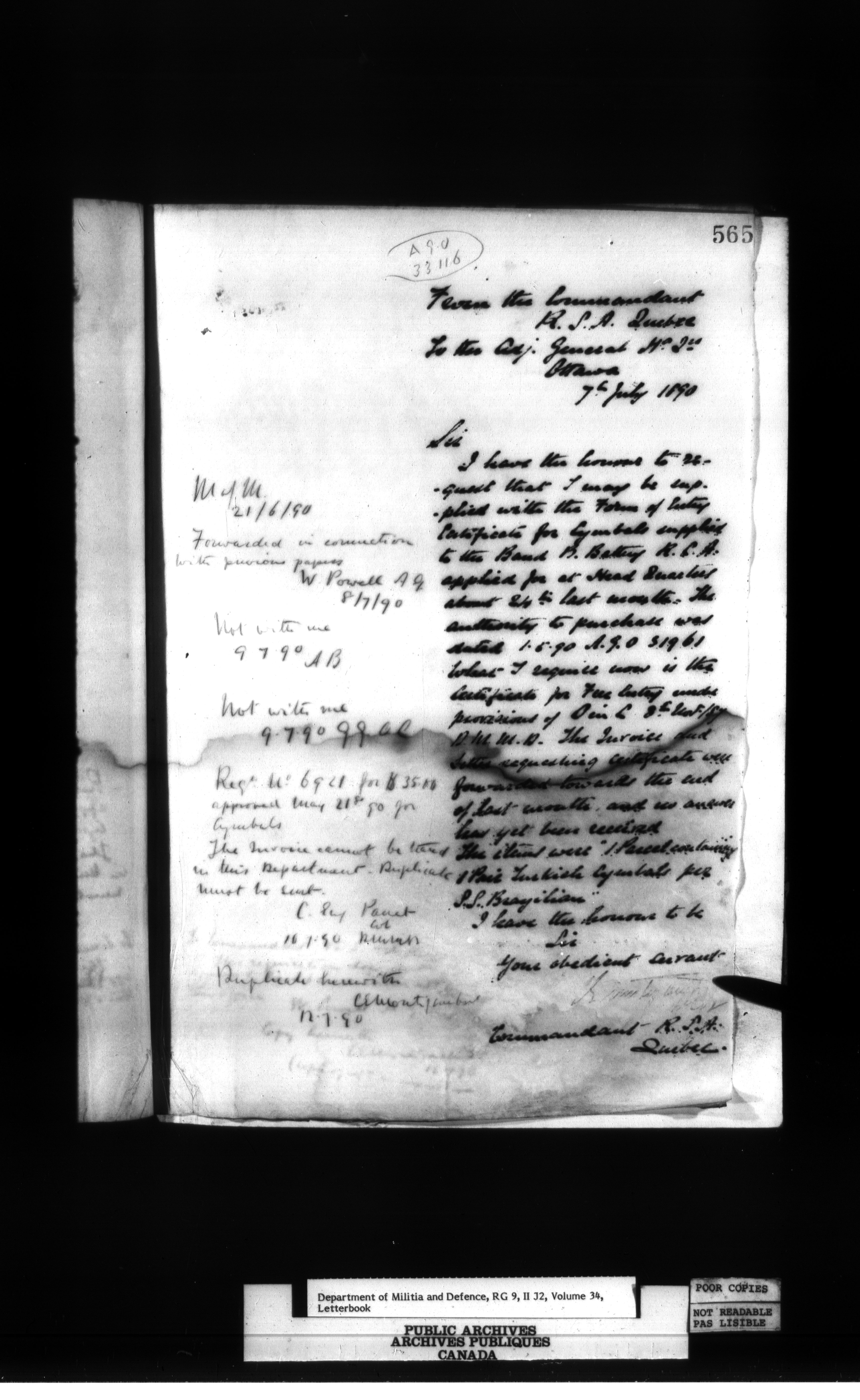Militia and Defence : Records of artillery units at Quebec : T-458