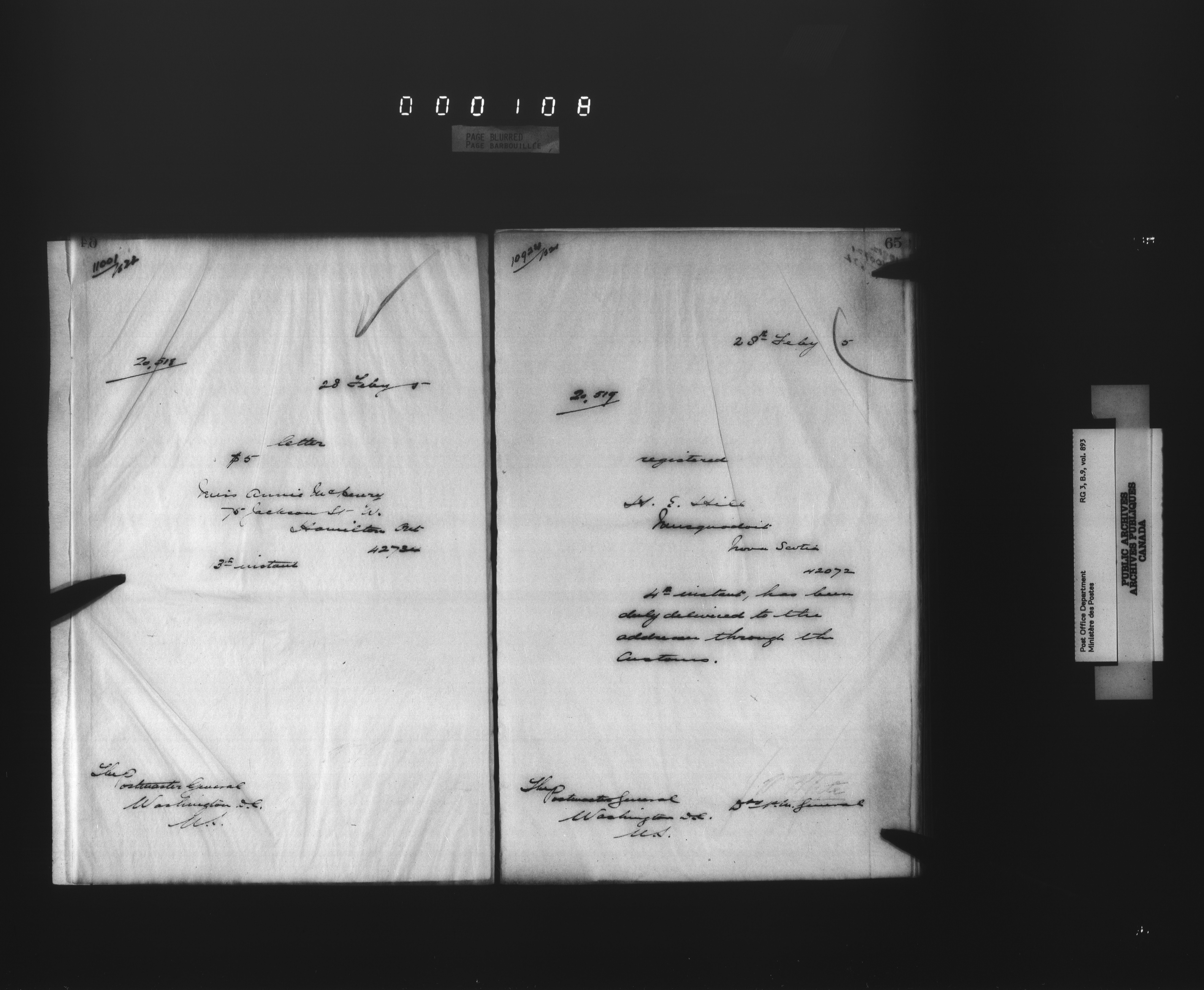 Deputy Postmaster General : International correspondence sent - 4587