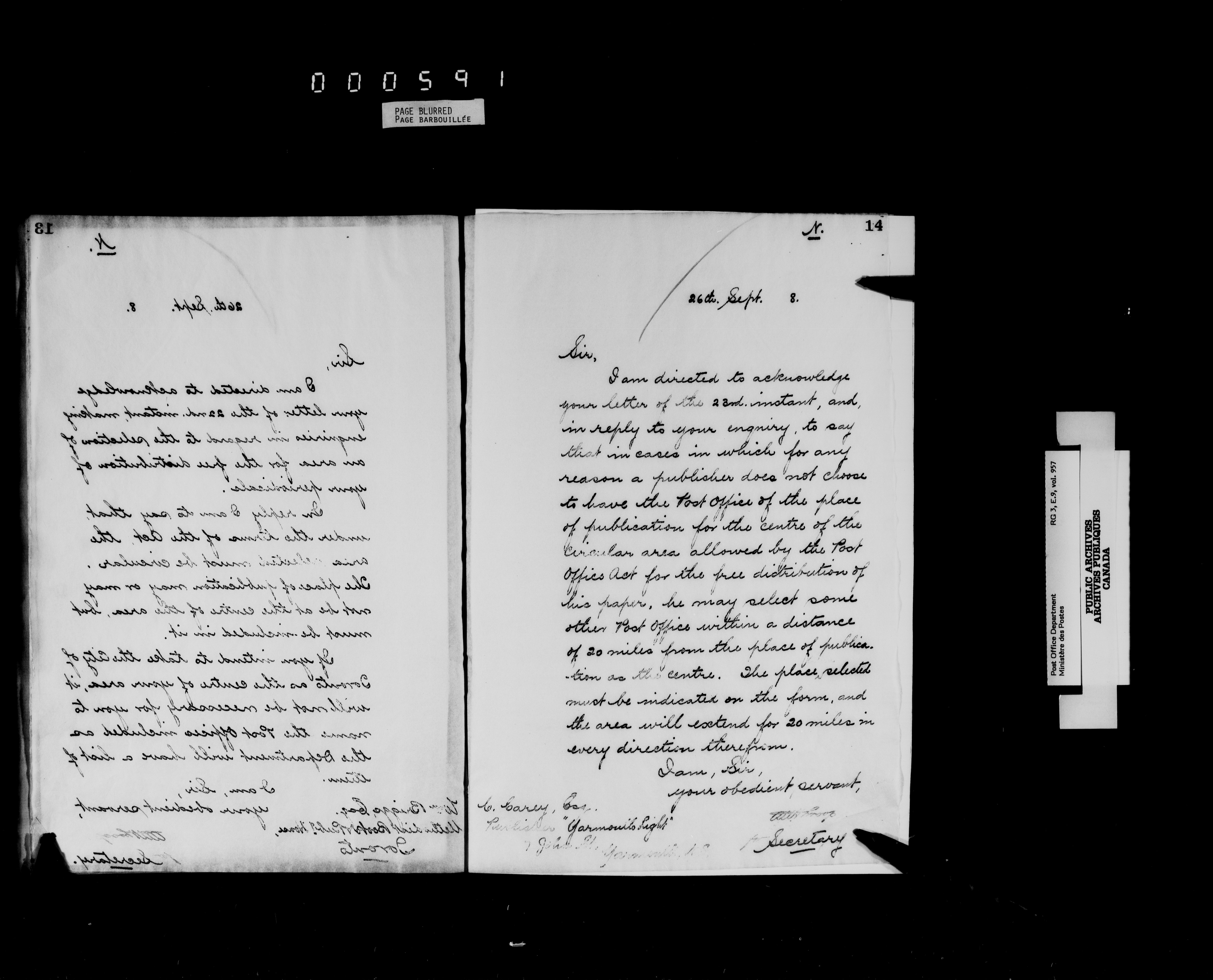 Post Office Department, Transportation Branch : Correspondence related to mail privileges and government patronage : T-4597