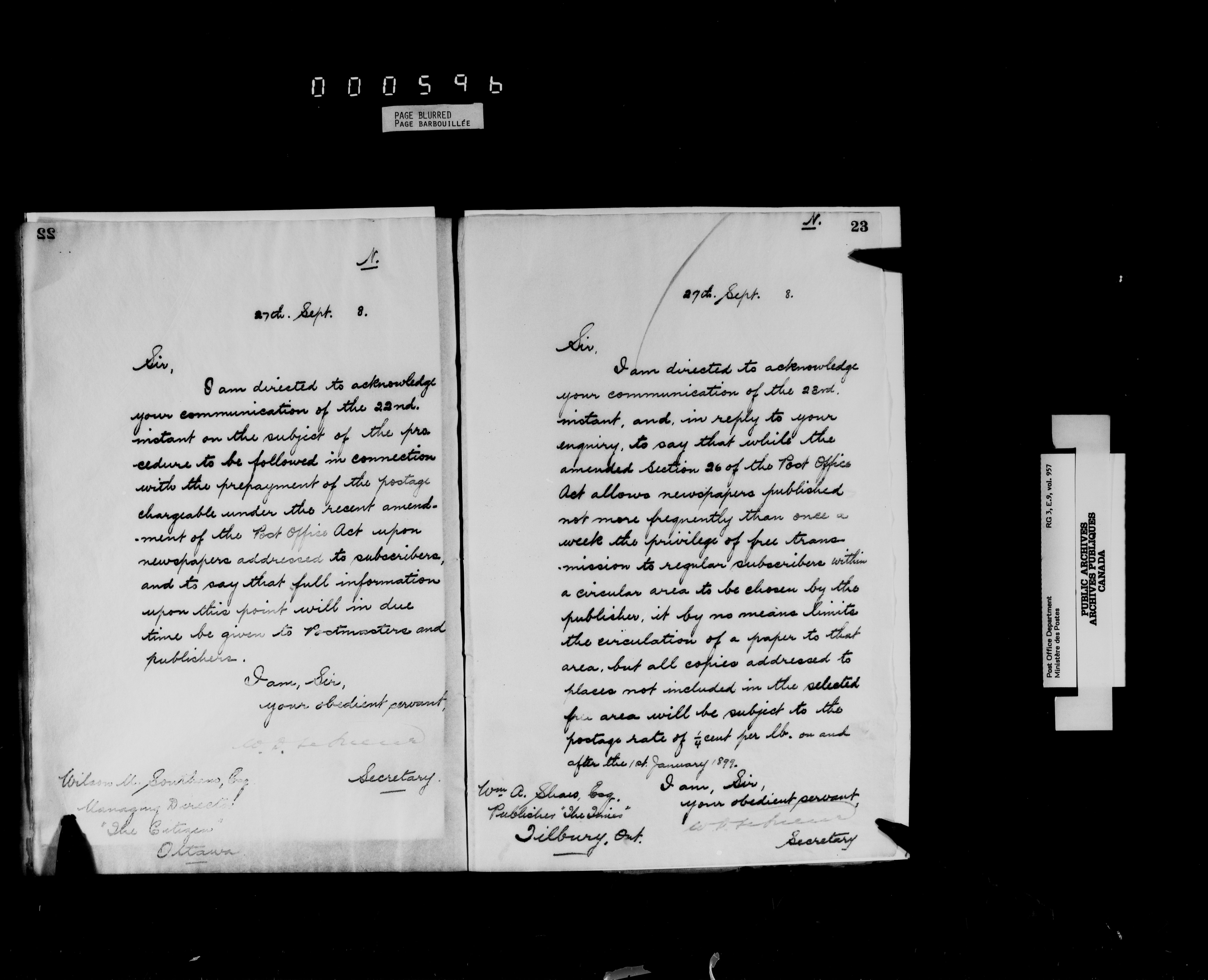 Post Office Department, Transportation Branch : Correspondence related to mail privileges and government patronage - 4597