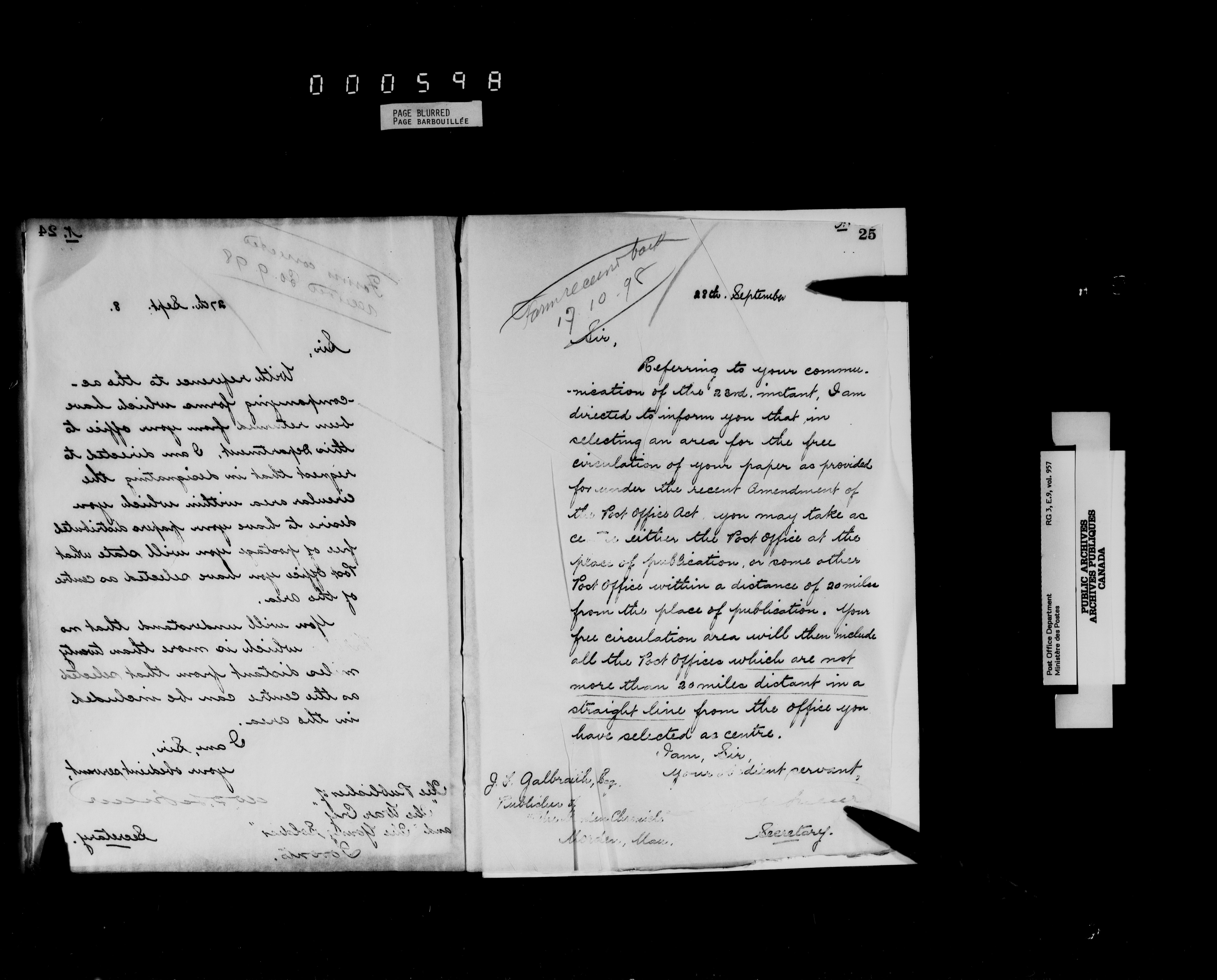 Post Office Department, Transportation Branch : Correspondence related to mail privileges and government patronage - 4597