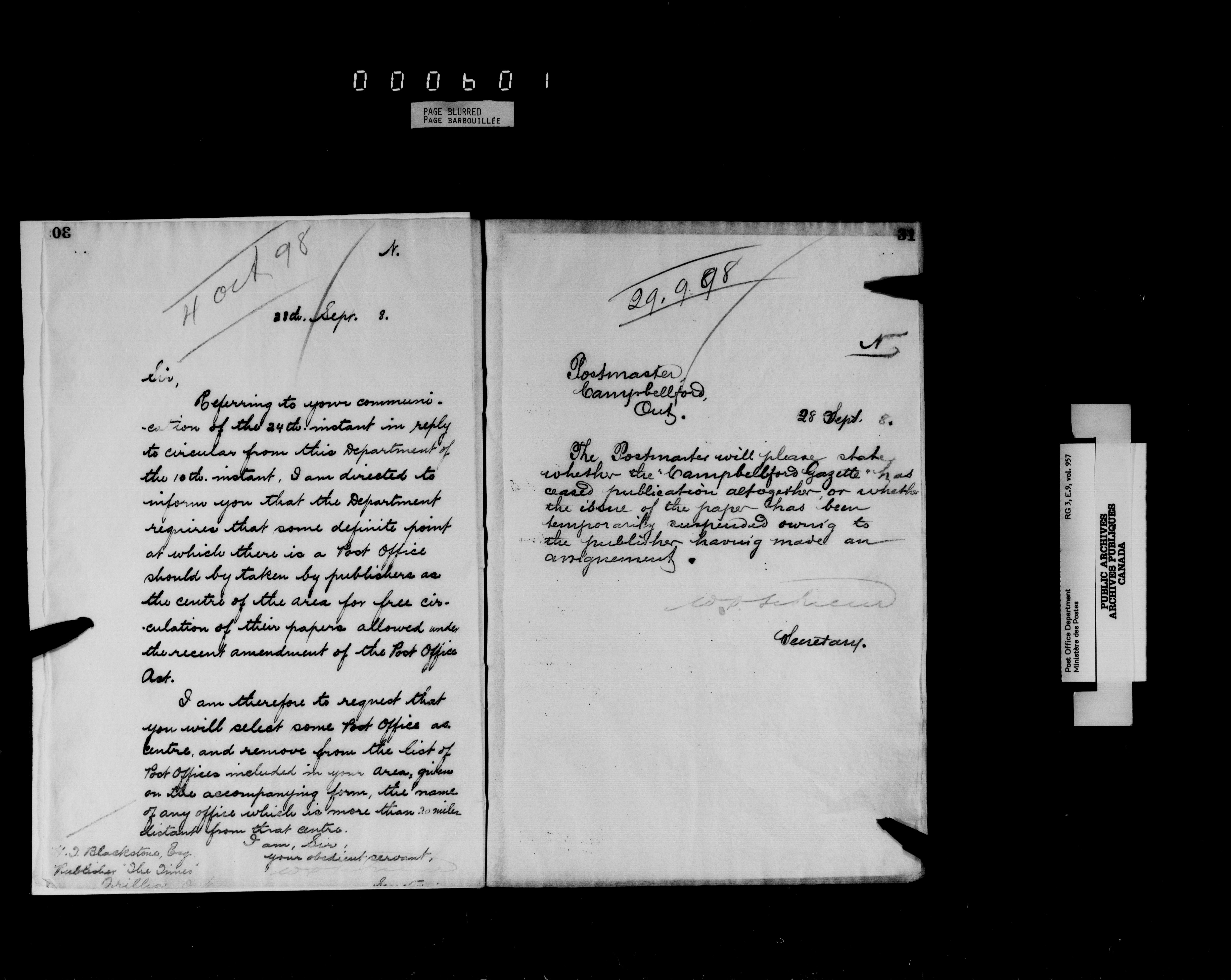 Post Office Department, Transportation Branch : Correspondence related to mail privileges and government patronage - 4597