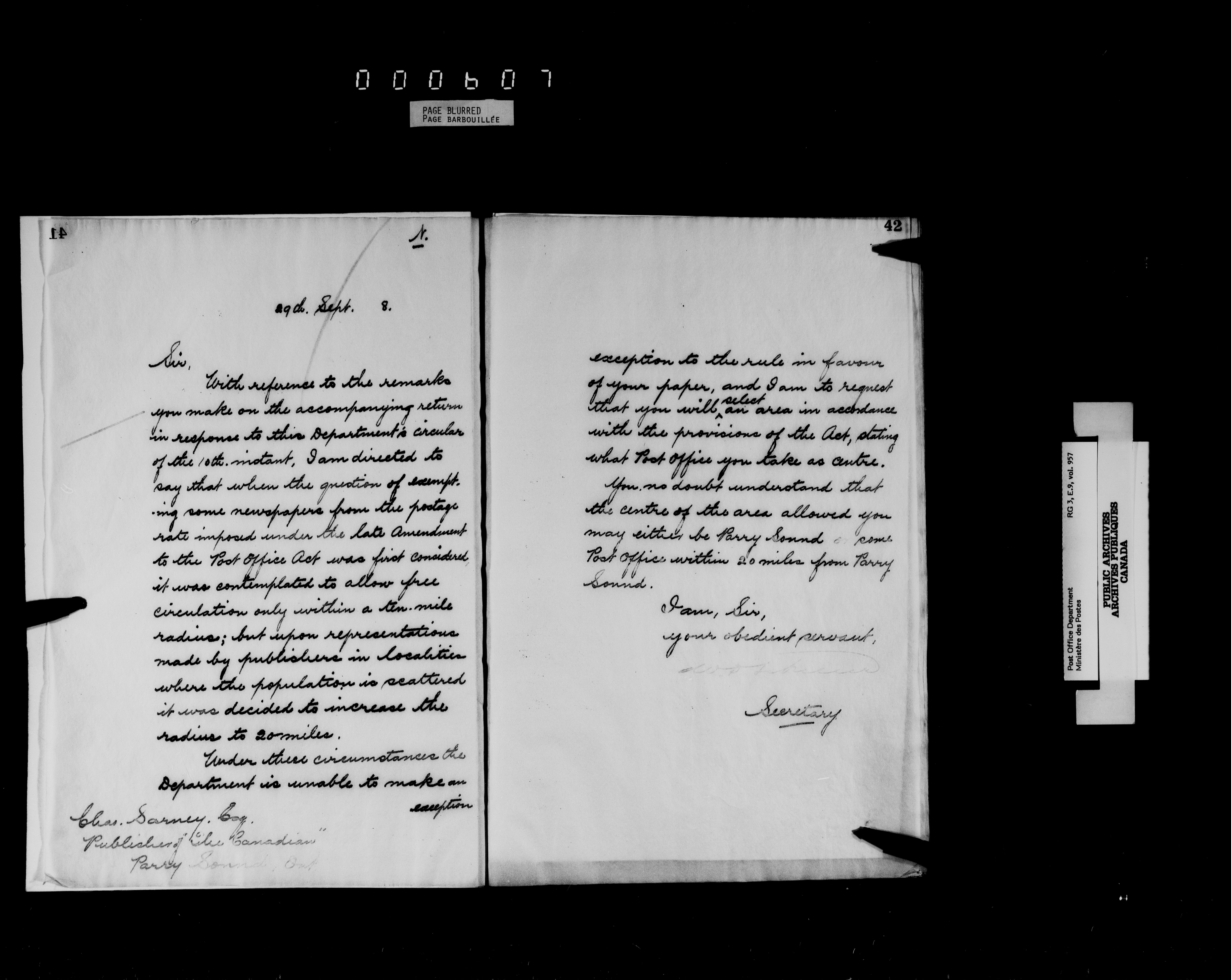 Post Office Department, Transportation Branch : Correspondence related to mail privileges and government patronage : T-4597