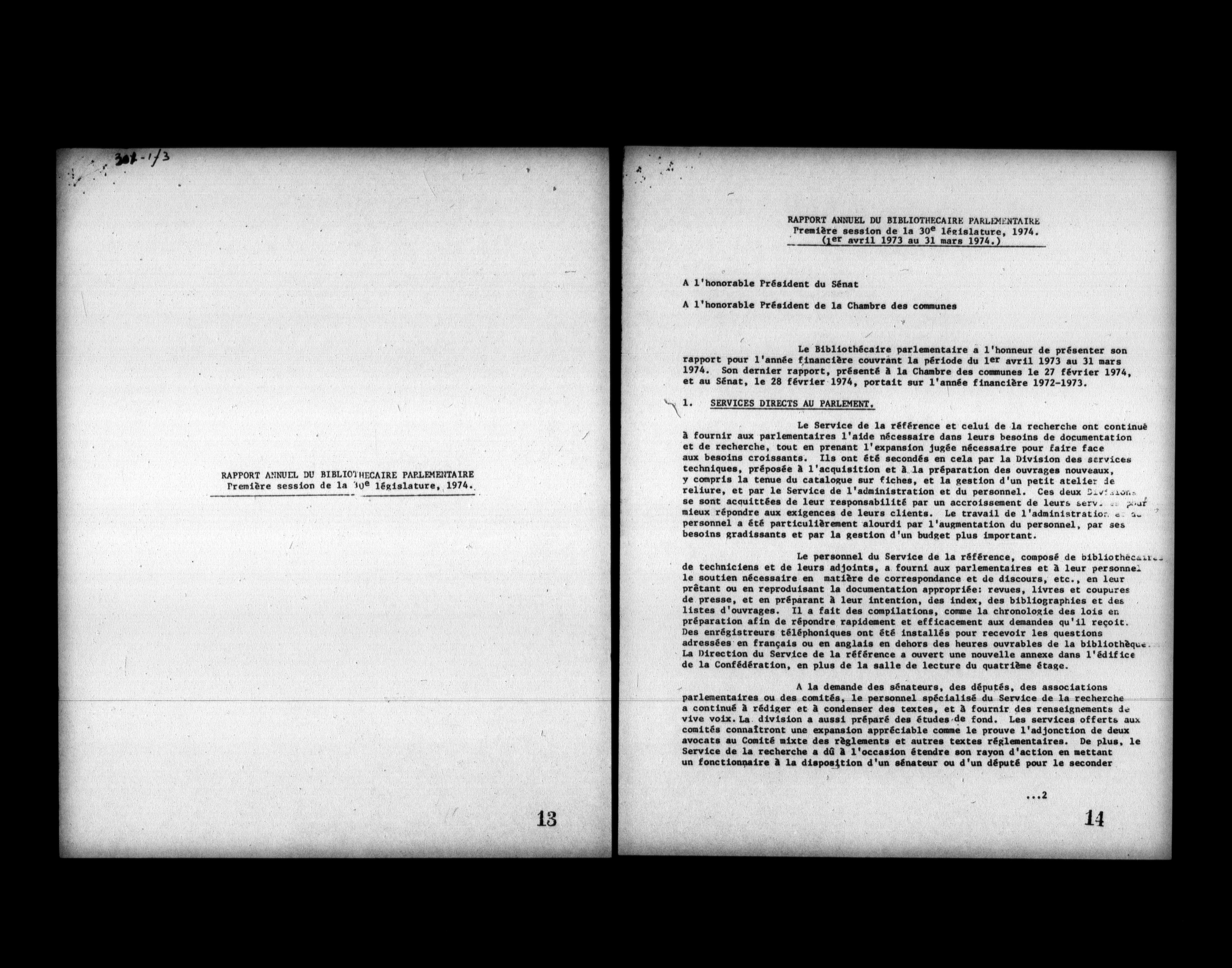 Unpublished sessional papers, 1st Session, 30th Parliament - 4605