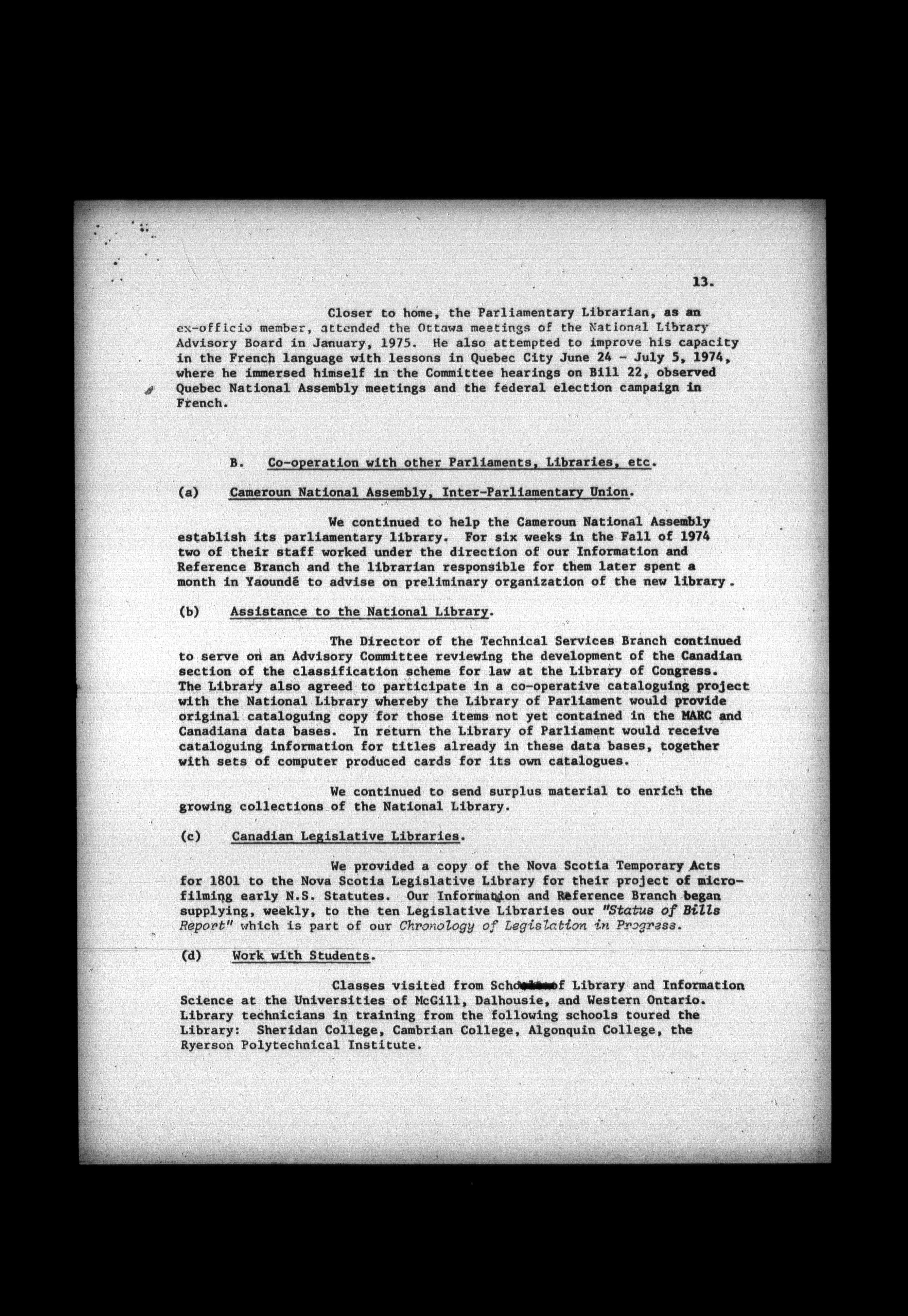 Unpublished sessional papers, 1st Session, 30th Parliament - 4605