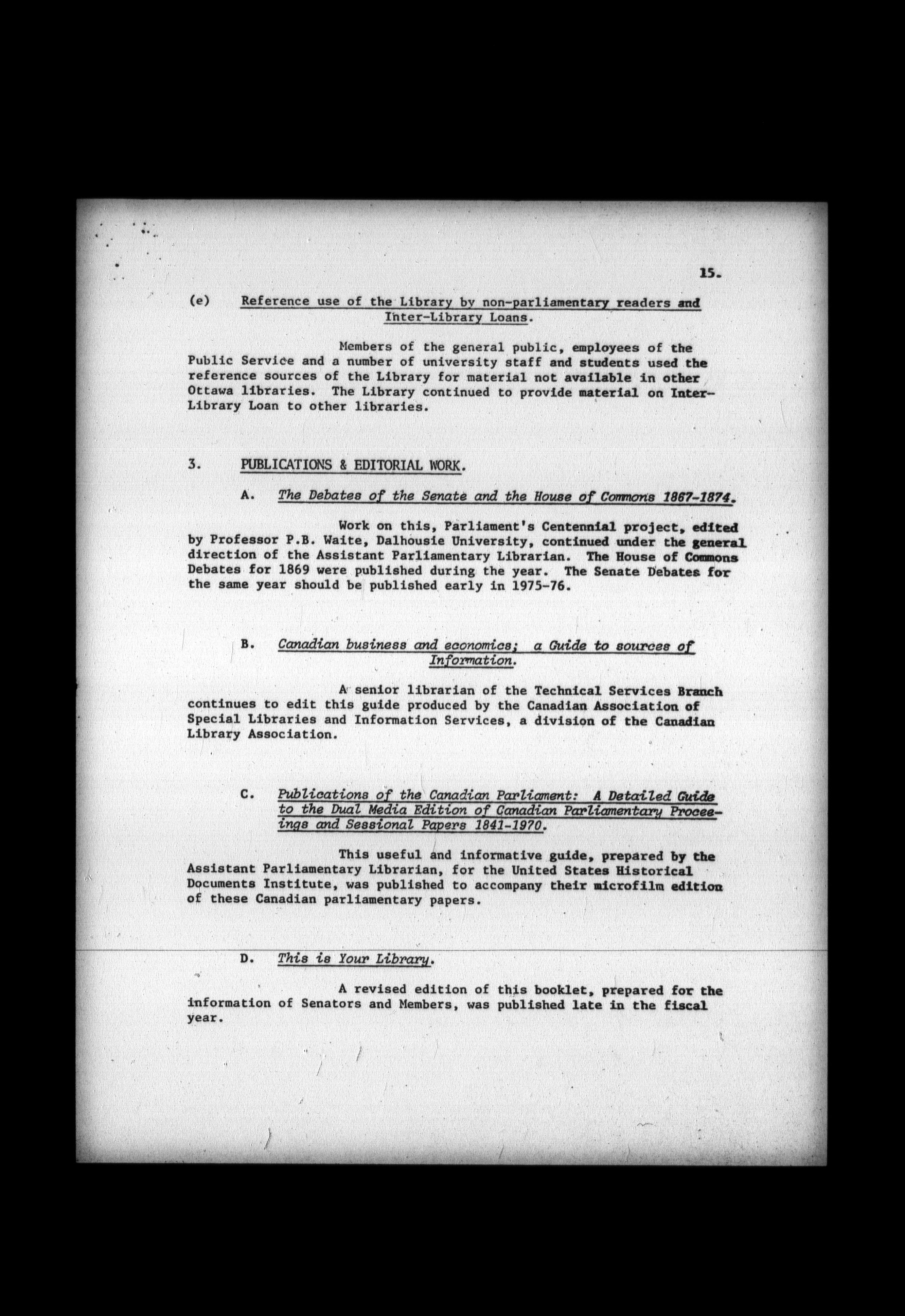 Unpublished sessional papers, 1st Session, 30th Parliament - 4605