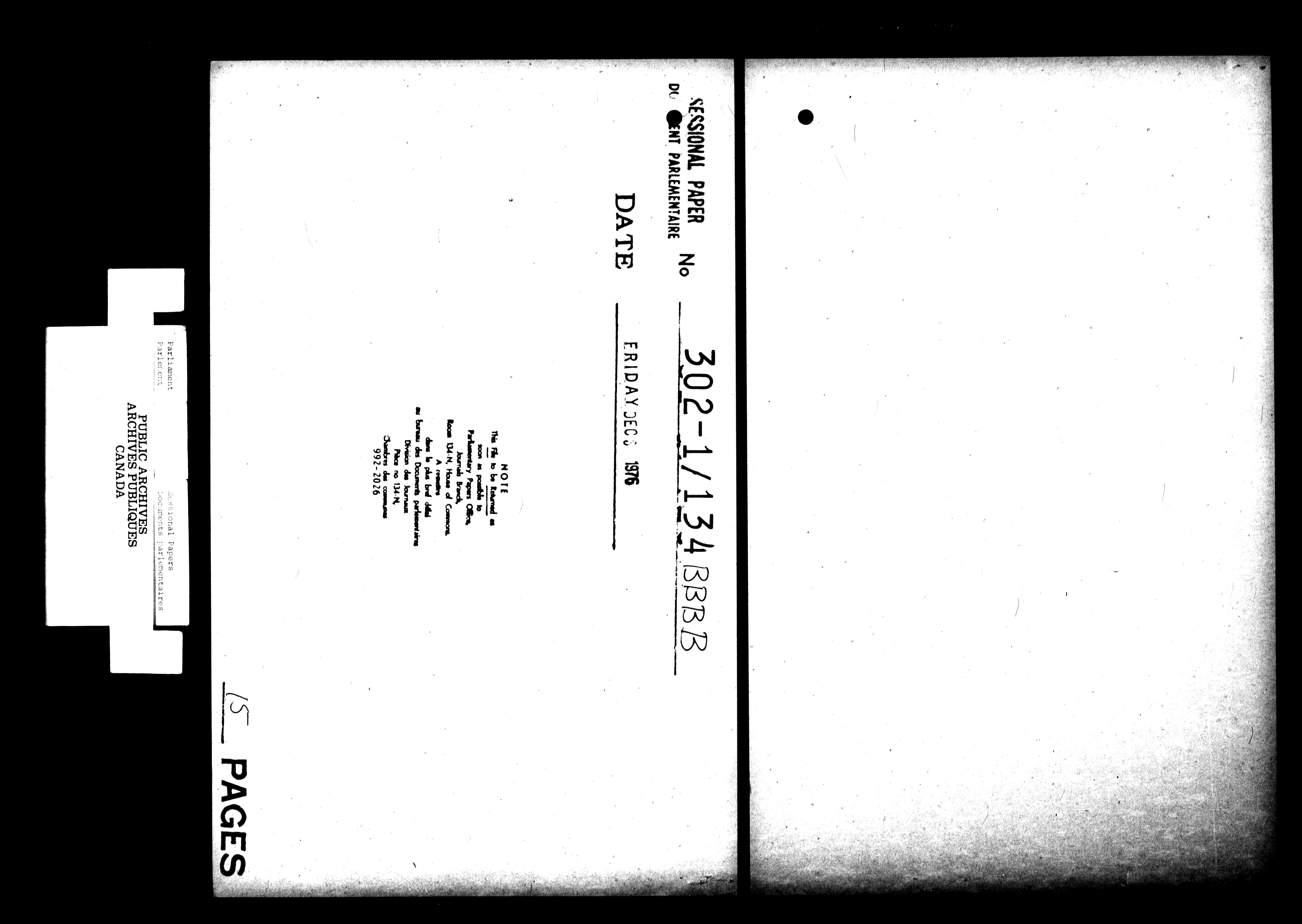 Unpublished sessional papers, 2nd Session, 30th Parliament - 4645