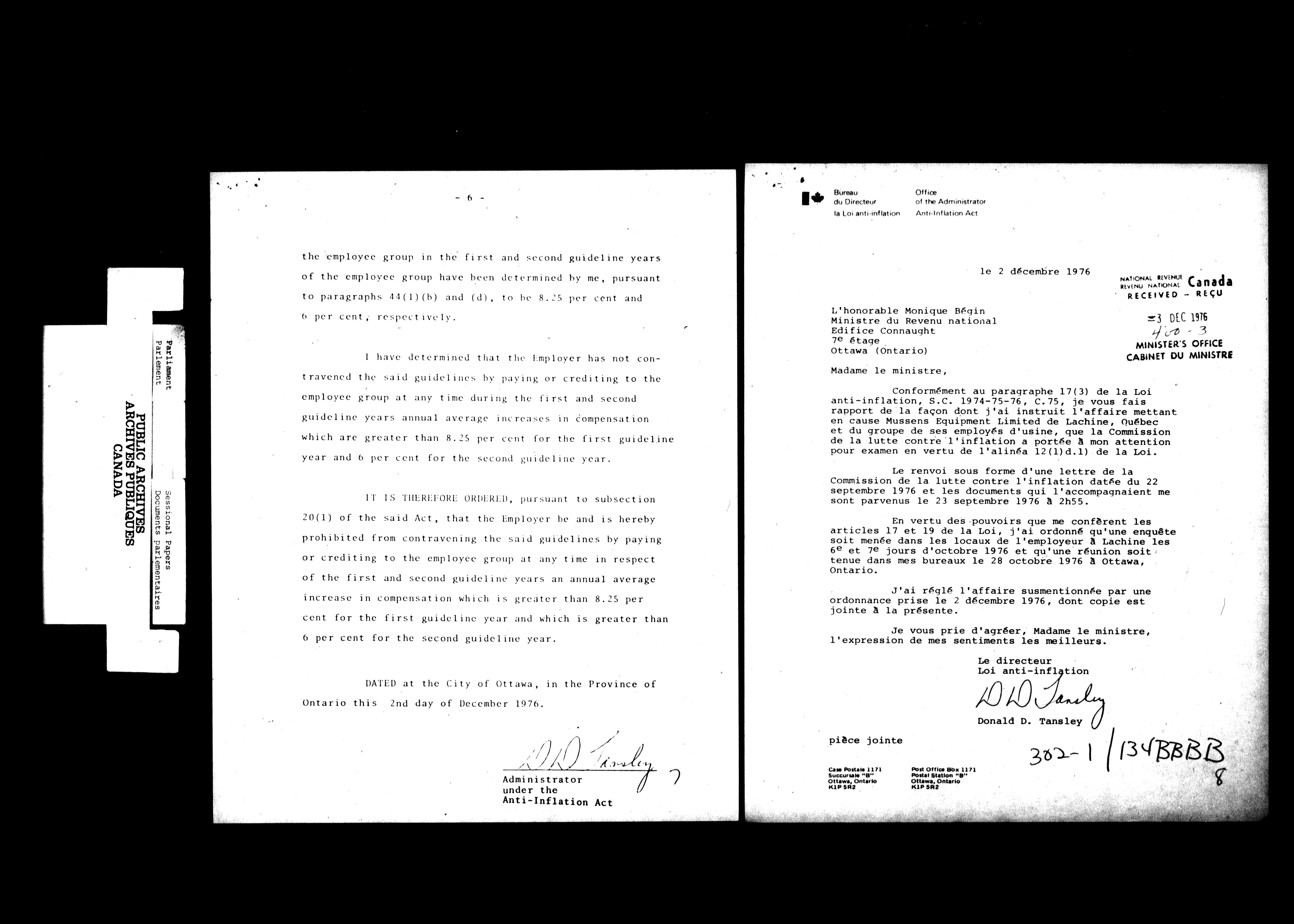 Unpublished sessional papers, 2nd Session, 30th Parliament - 4645