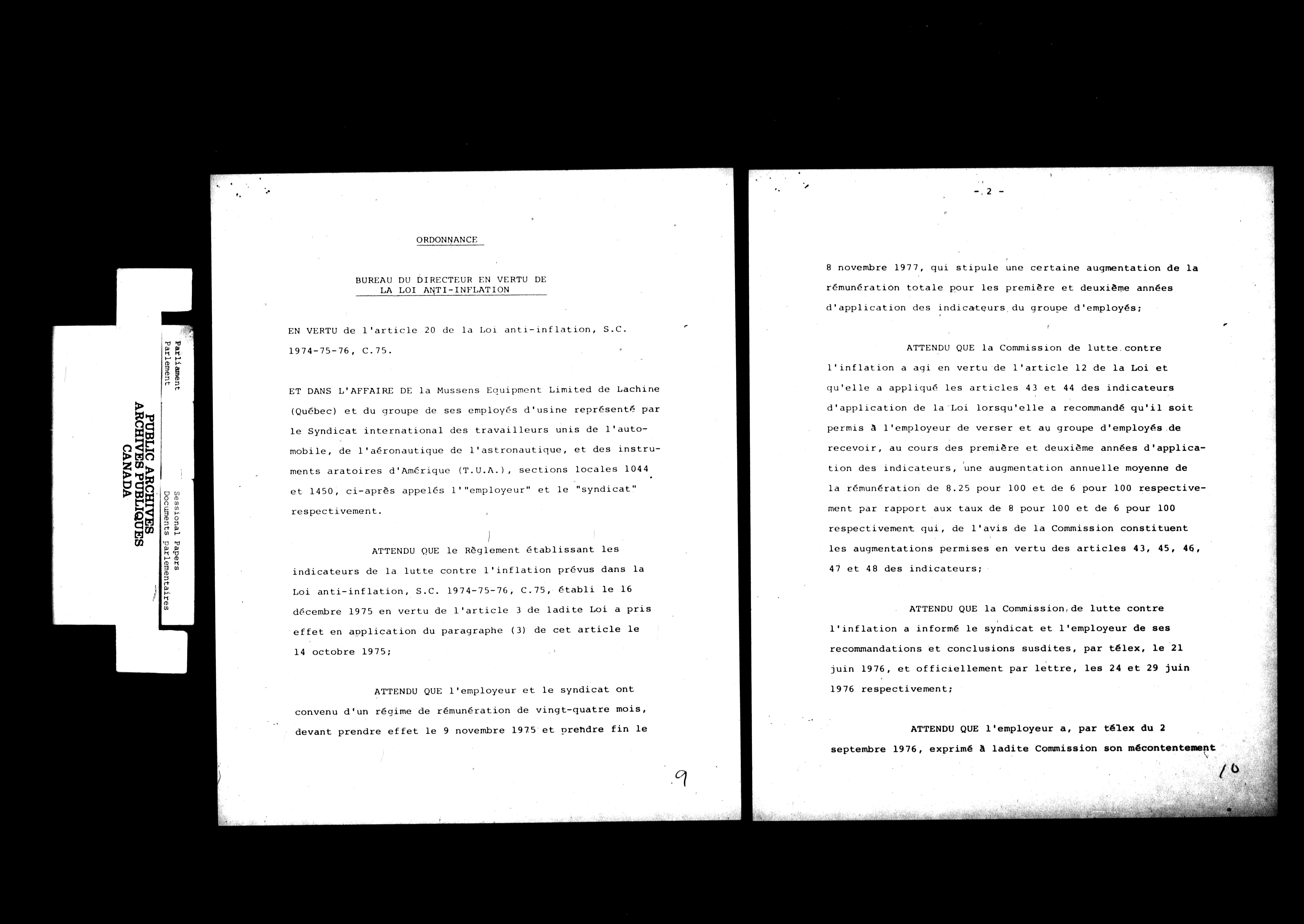 Unpublished sessional papers, 2nd Session, 30th Parliament - 4645