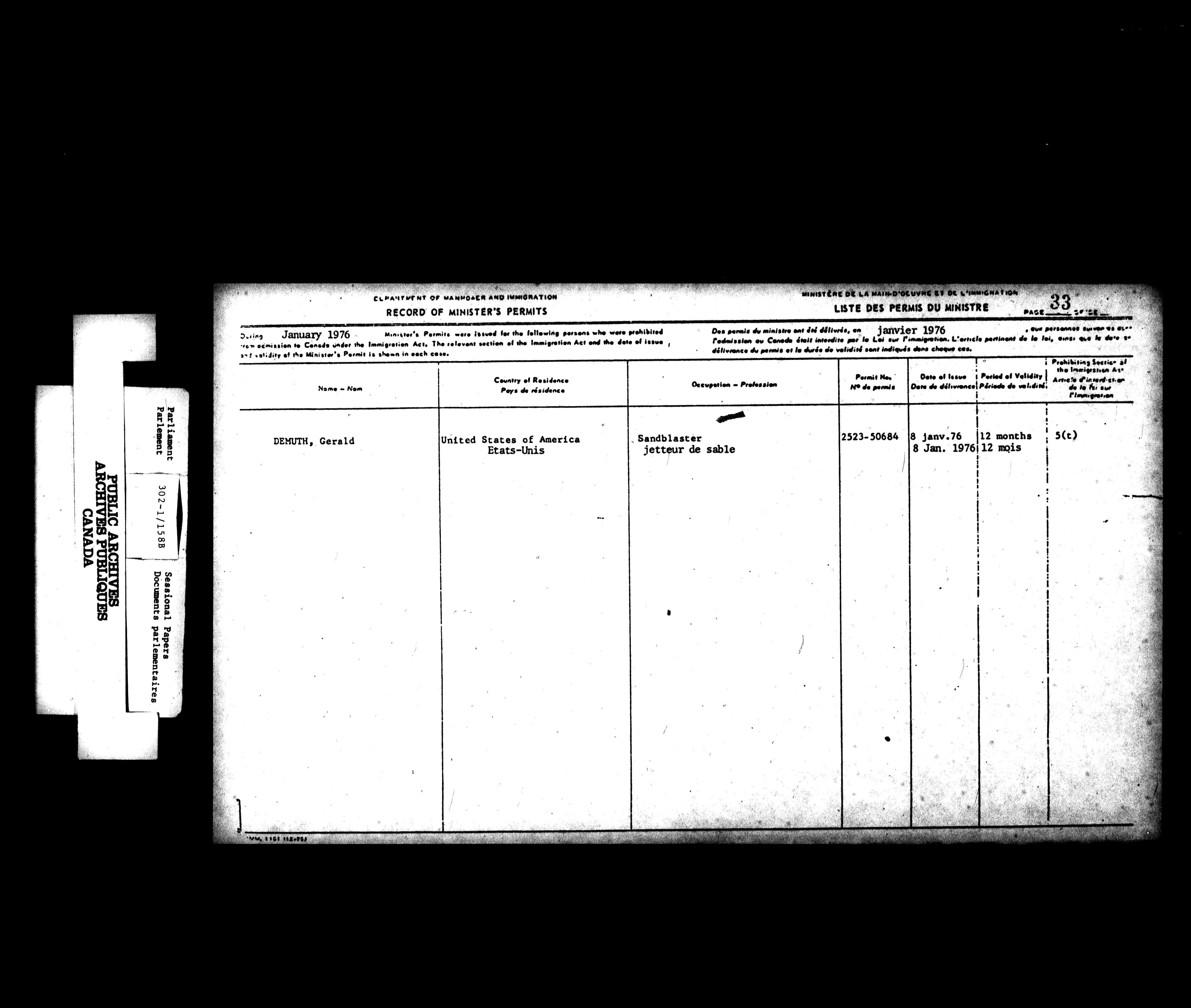 Unpublished sessional papers, 2nd Session, 30th Parliament - 4649