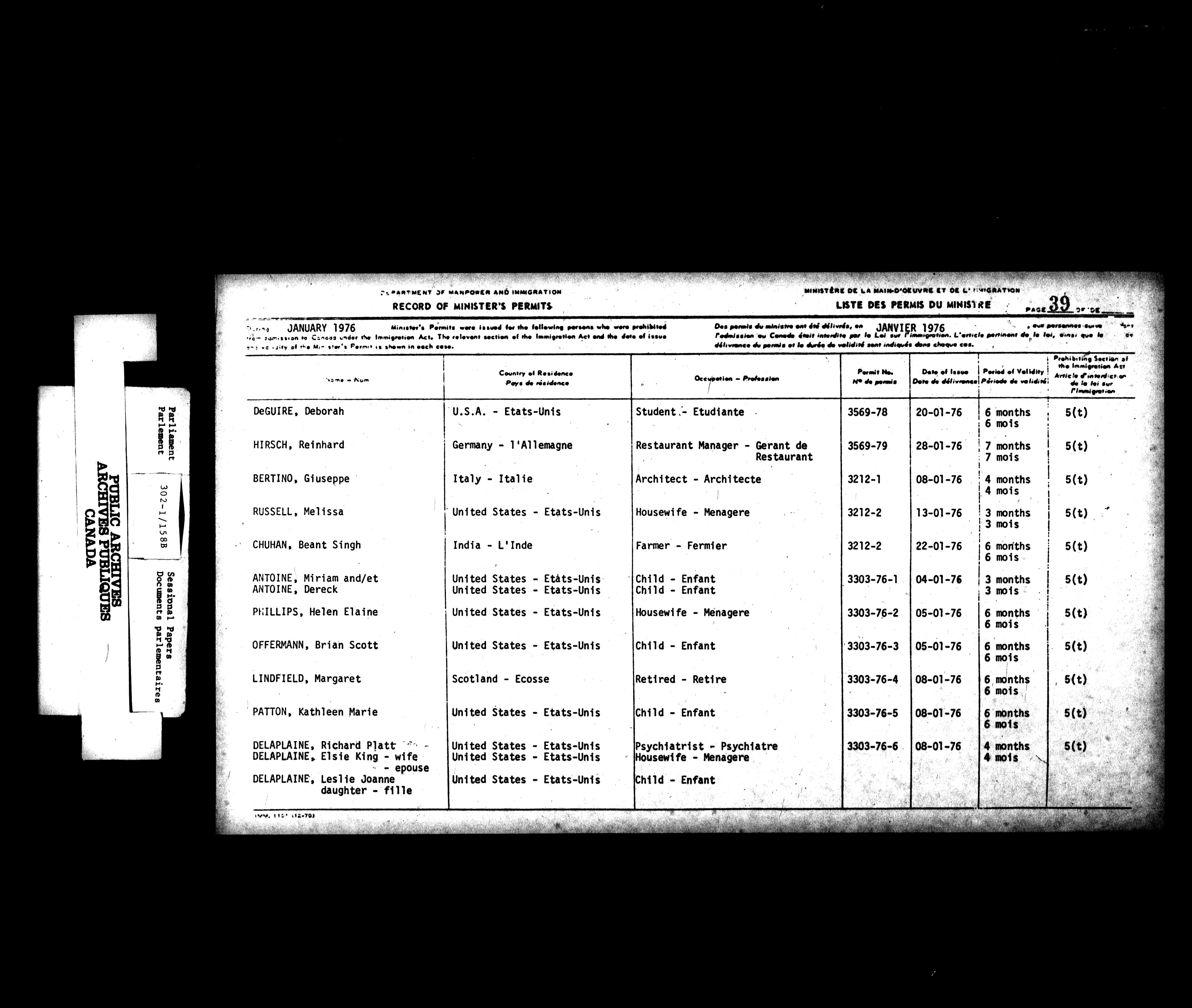 Unpublished sessional papers, 2nd Session, 30th Parliament - 4649