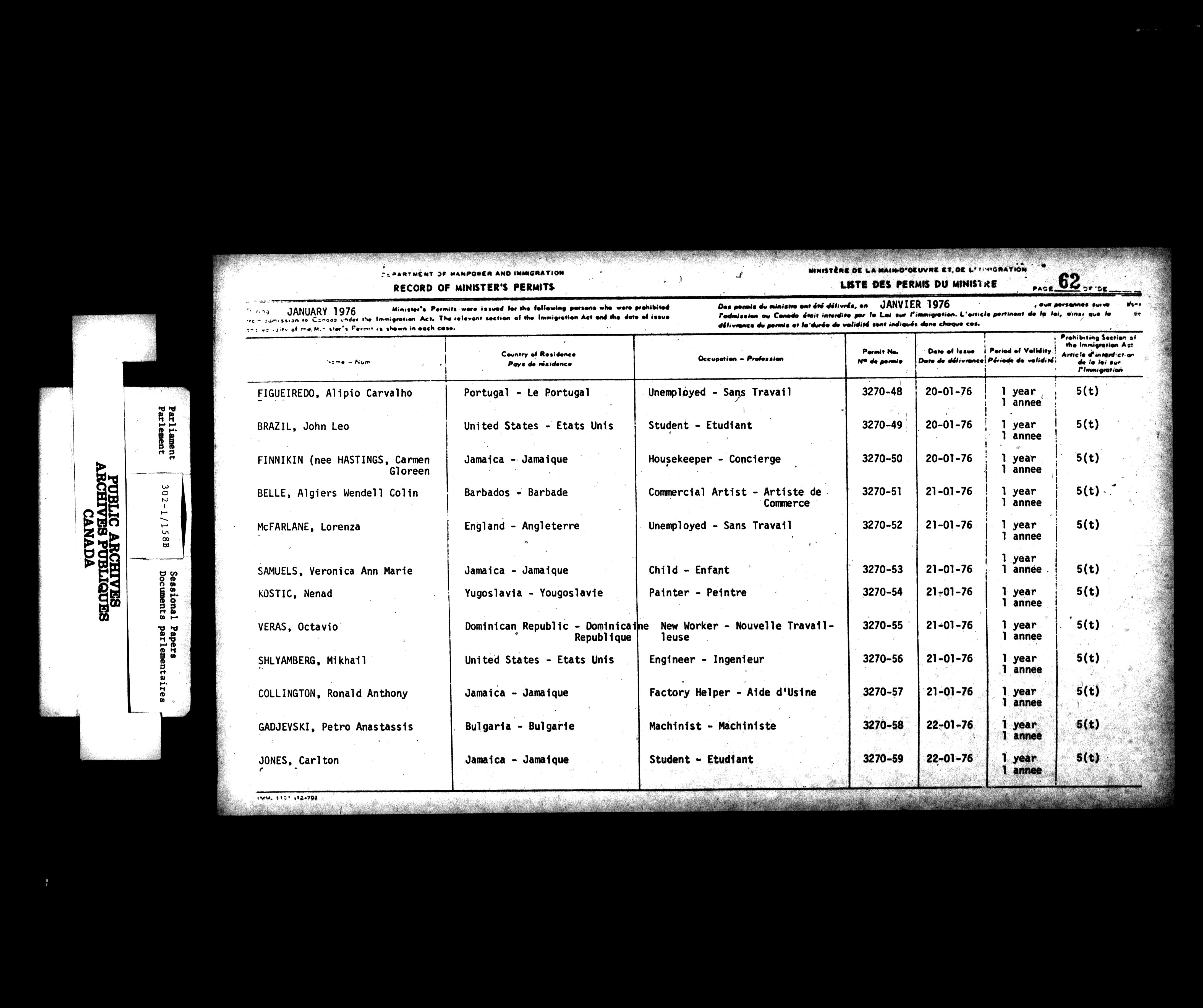 Unpublished sessional papers, 2nd Session, 30th Parliament - 4649