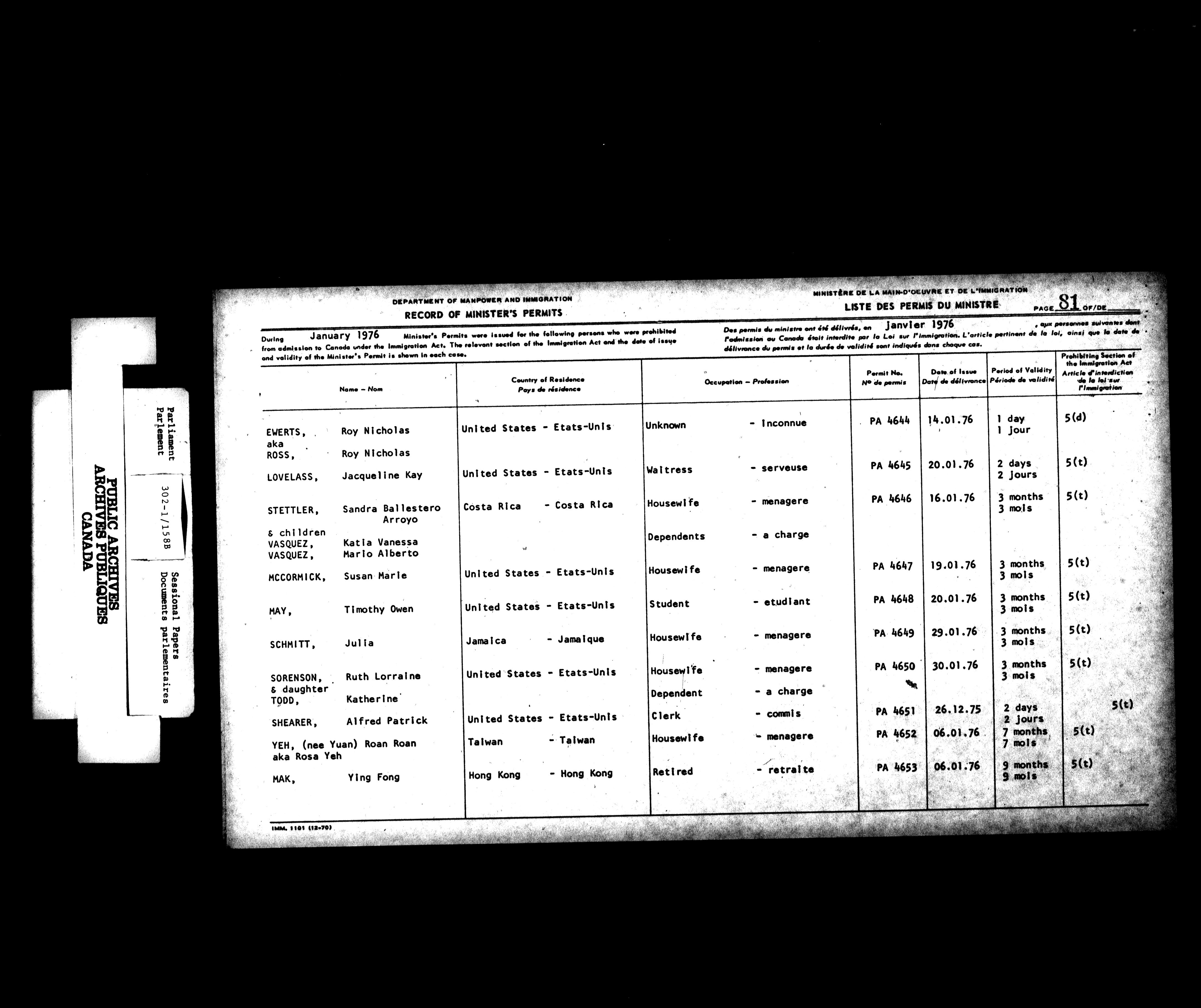 Unpublished sessional papers, 2nd Session, 30th Parliament - 4649
