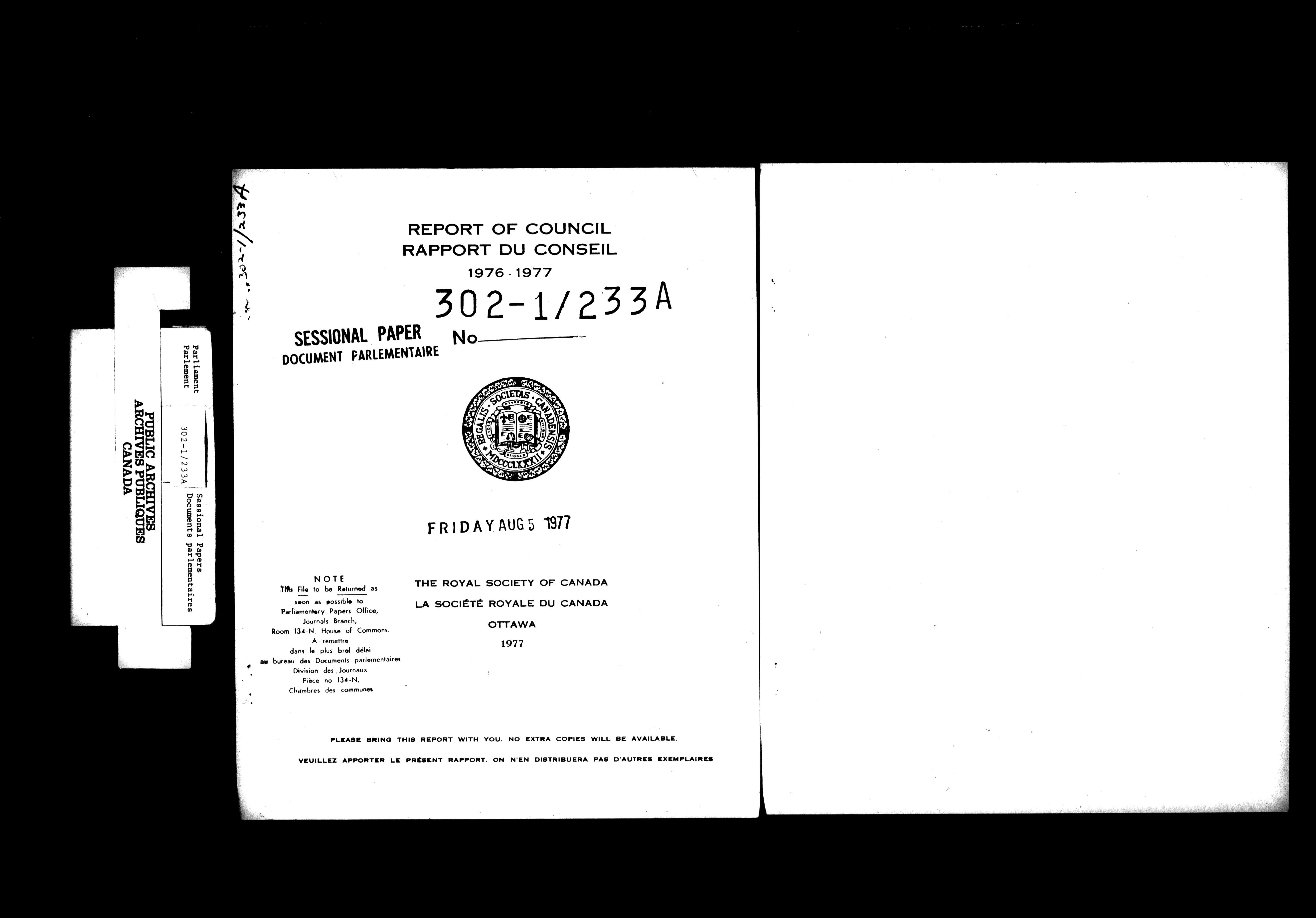 Unpublished sessional papers, 2nd Session, 30th Parliament - 4650