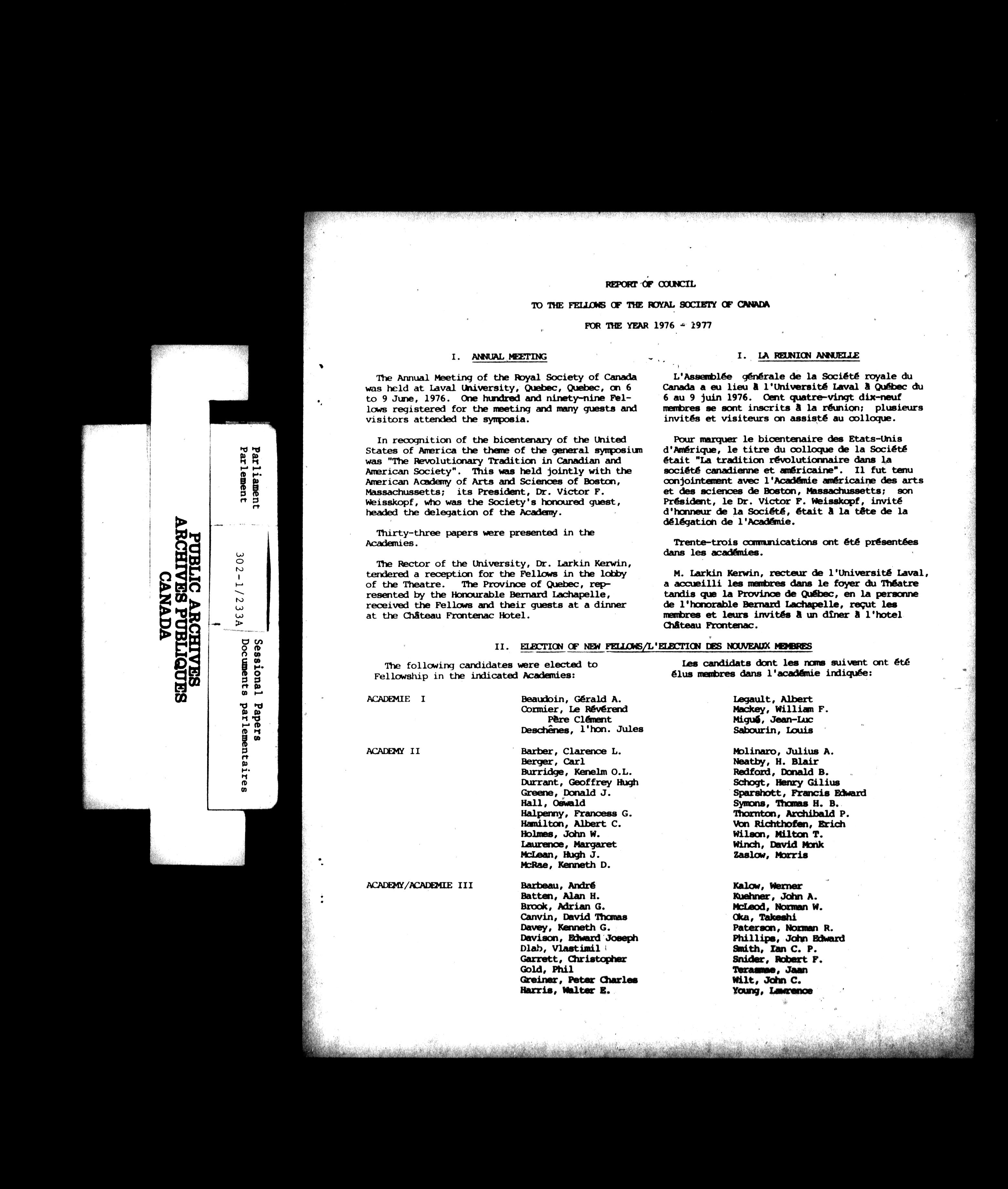 Unpublished sessional papers, 2nd Session, 30th Parliament - 4650