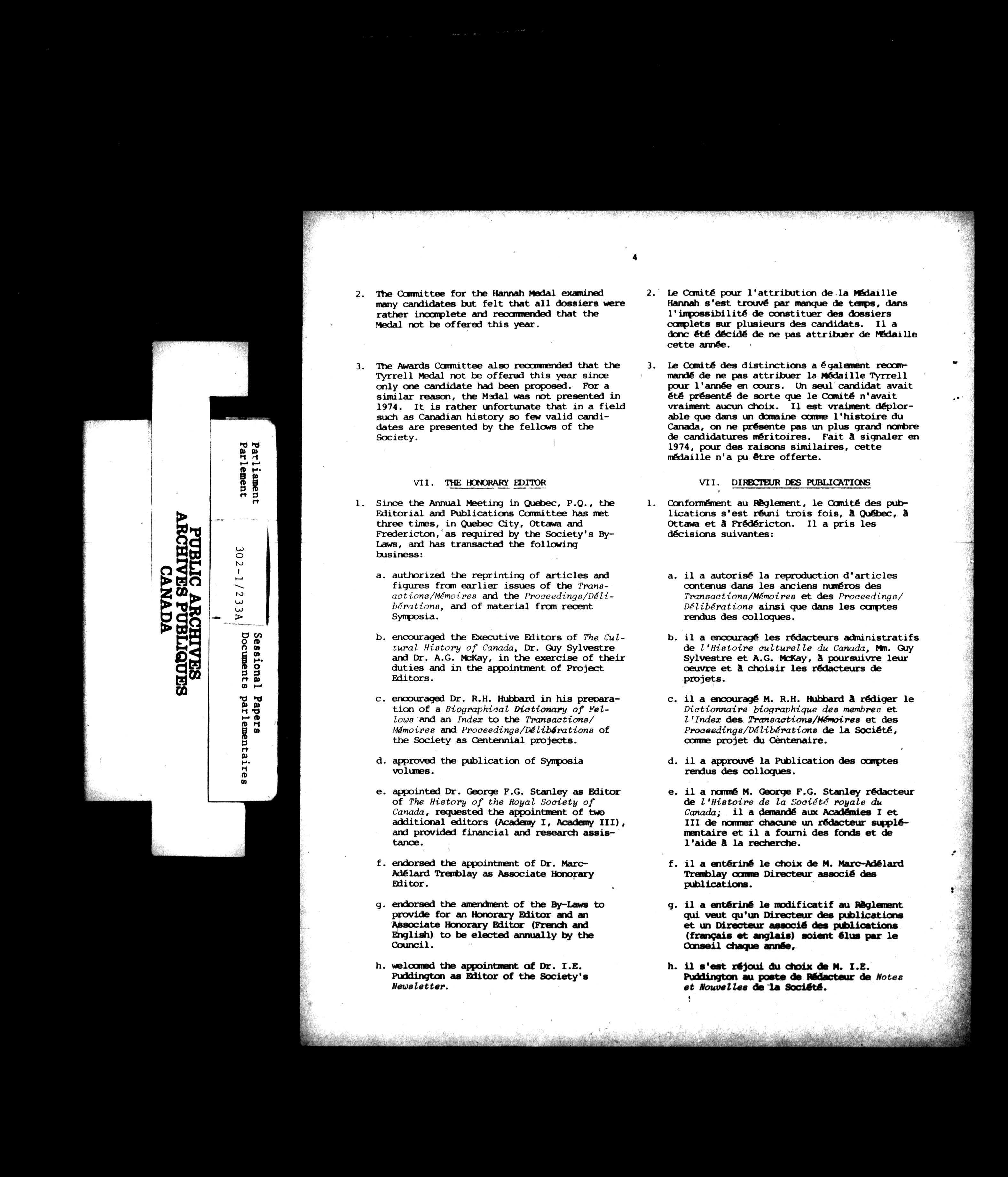 Unpublished sessional papers, 2nd Session, 30th Parliament - 4650