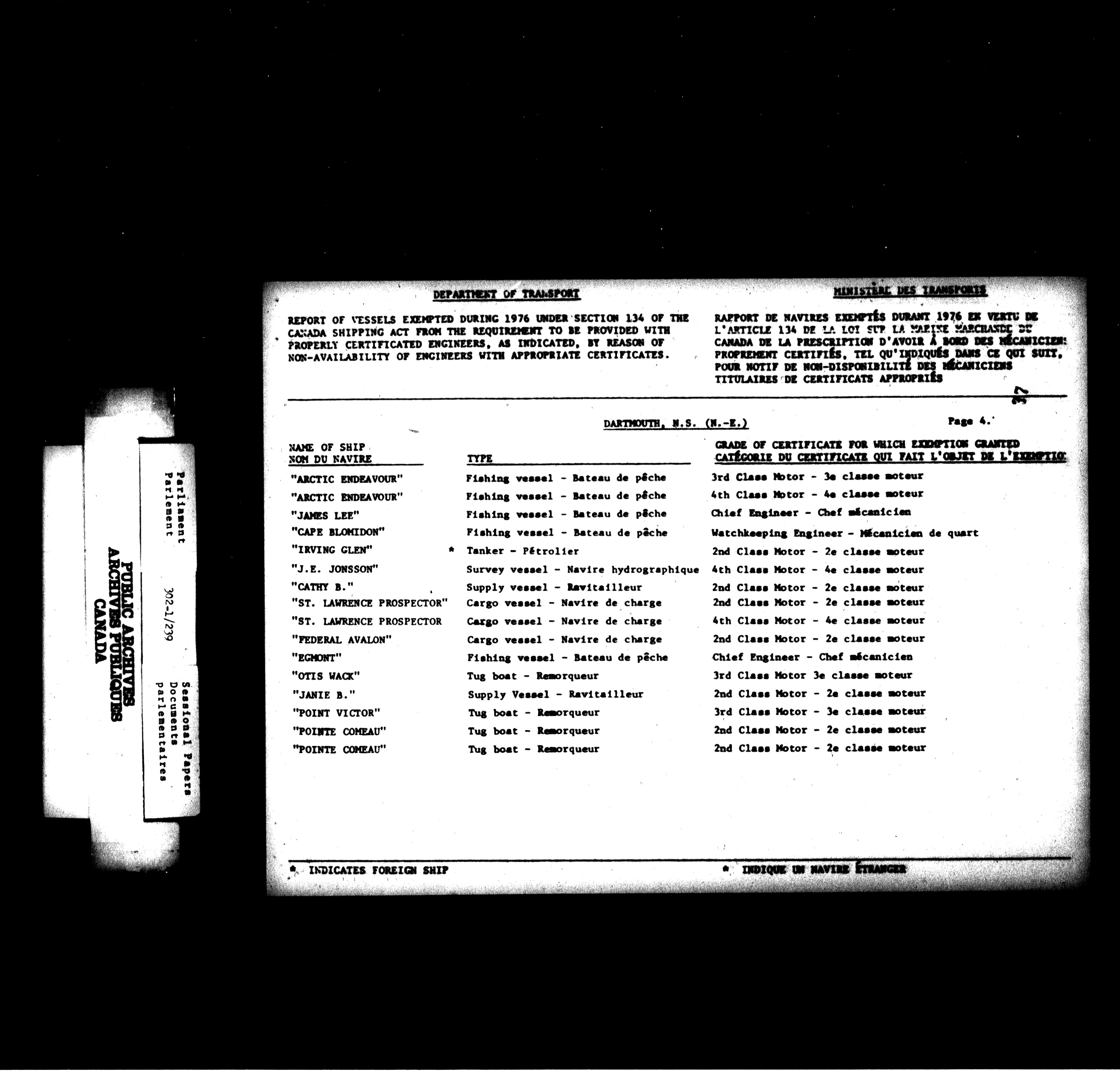 Unpublished sessional papers, 2nd Session, 30th Parliament - 4651