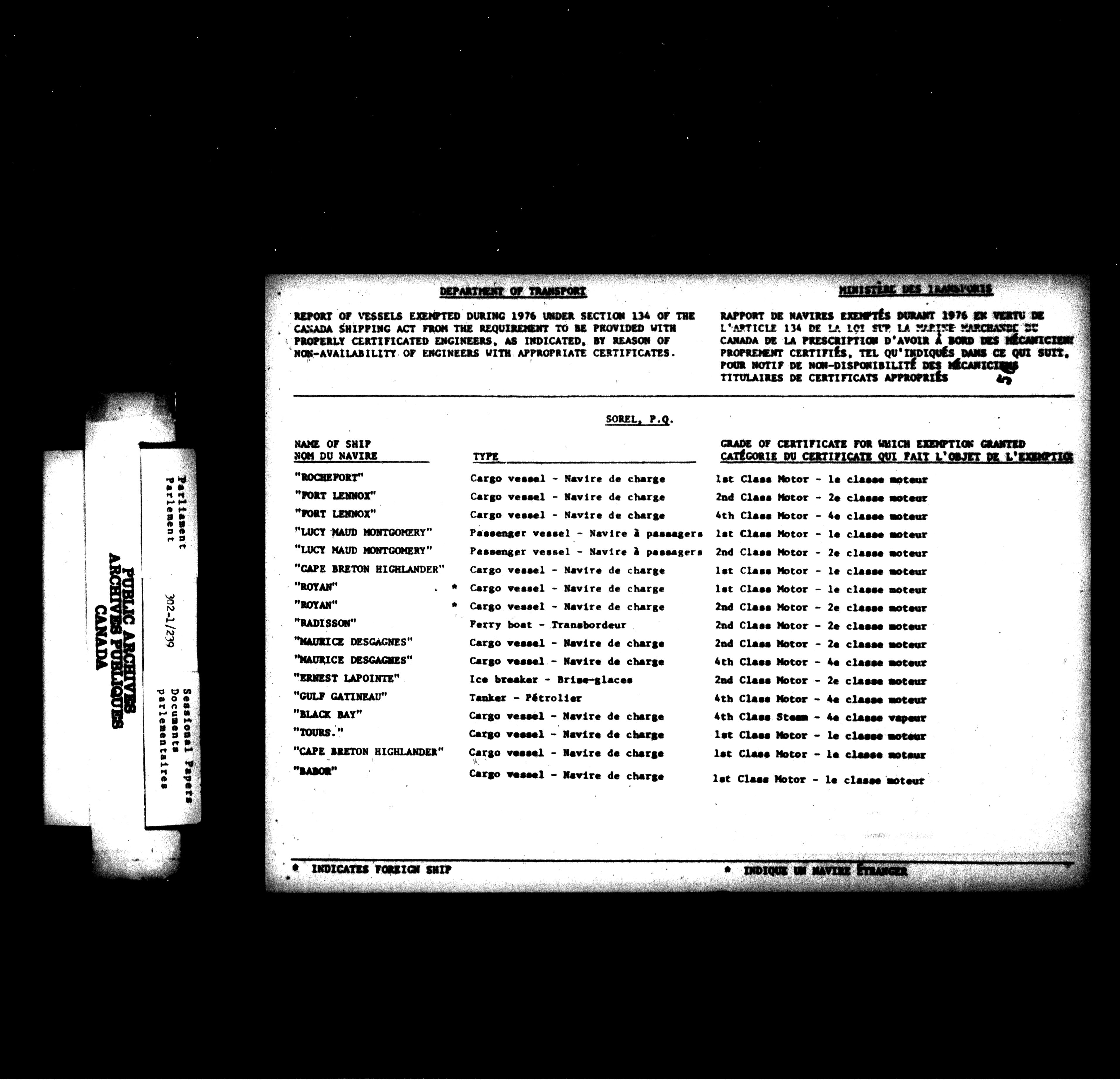 Unpublished sessional papers, 2nd Session, 30th Parliament - 4651