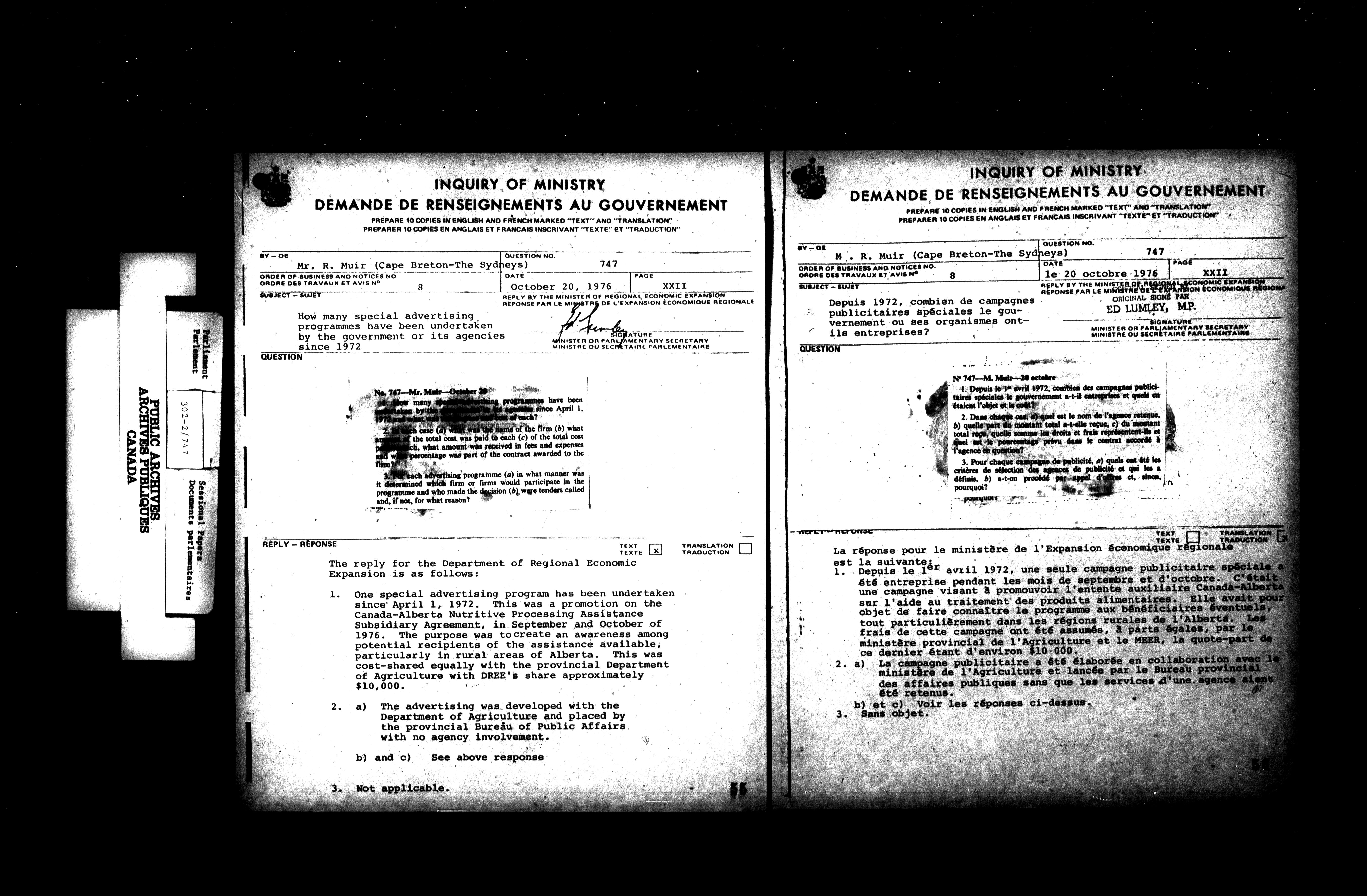 Unpublished sessional papers, 2nd Session, 30th Parliament - 4656