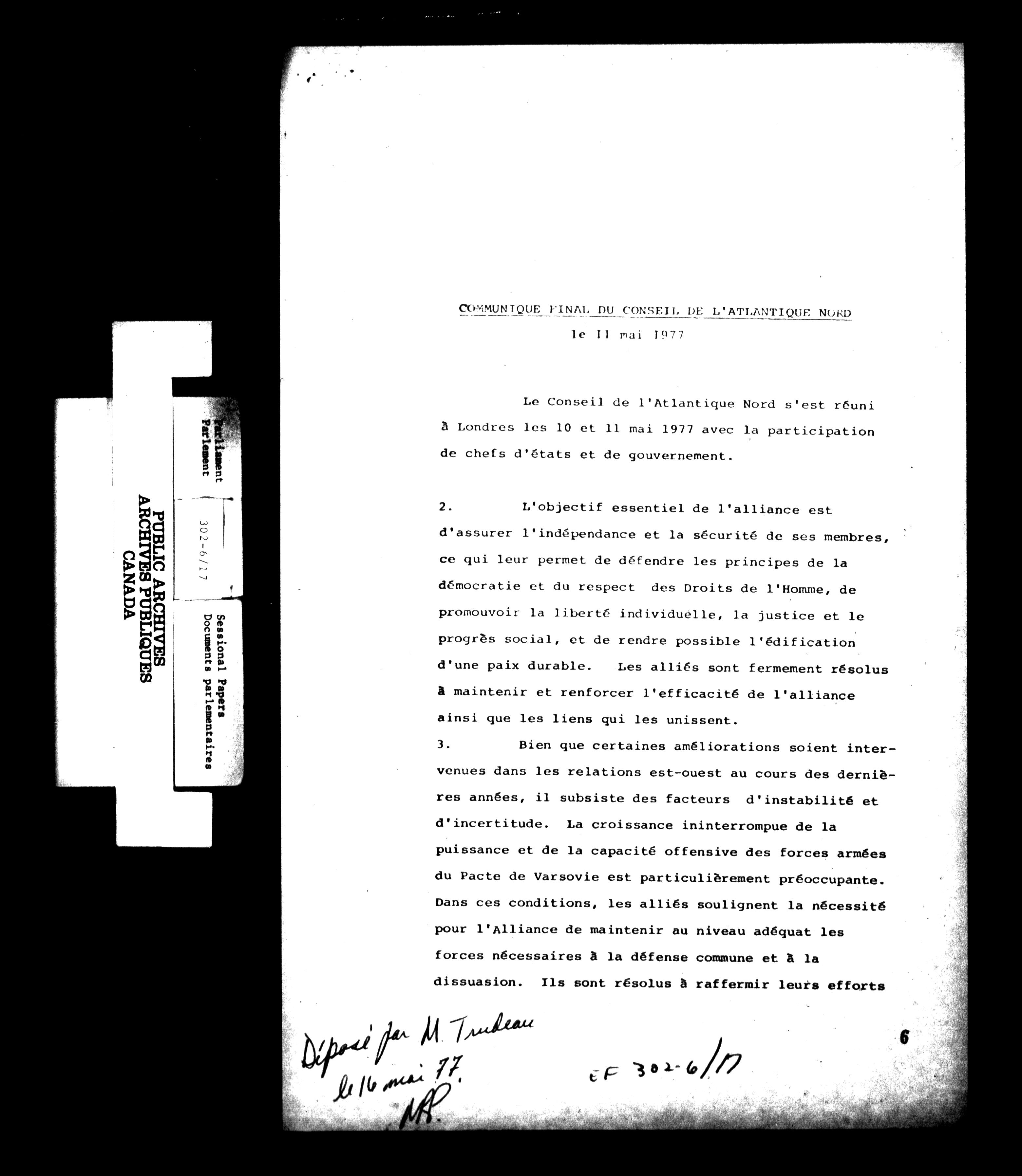 Unpublished sessional papers, 2nd Session, 30th Parliament - 4662