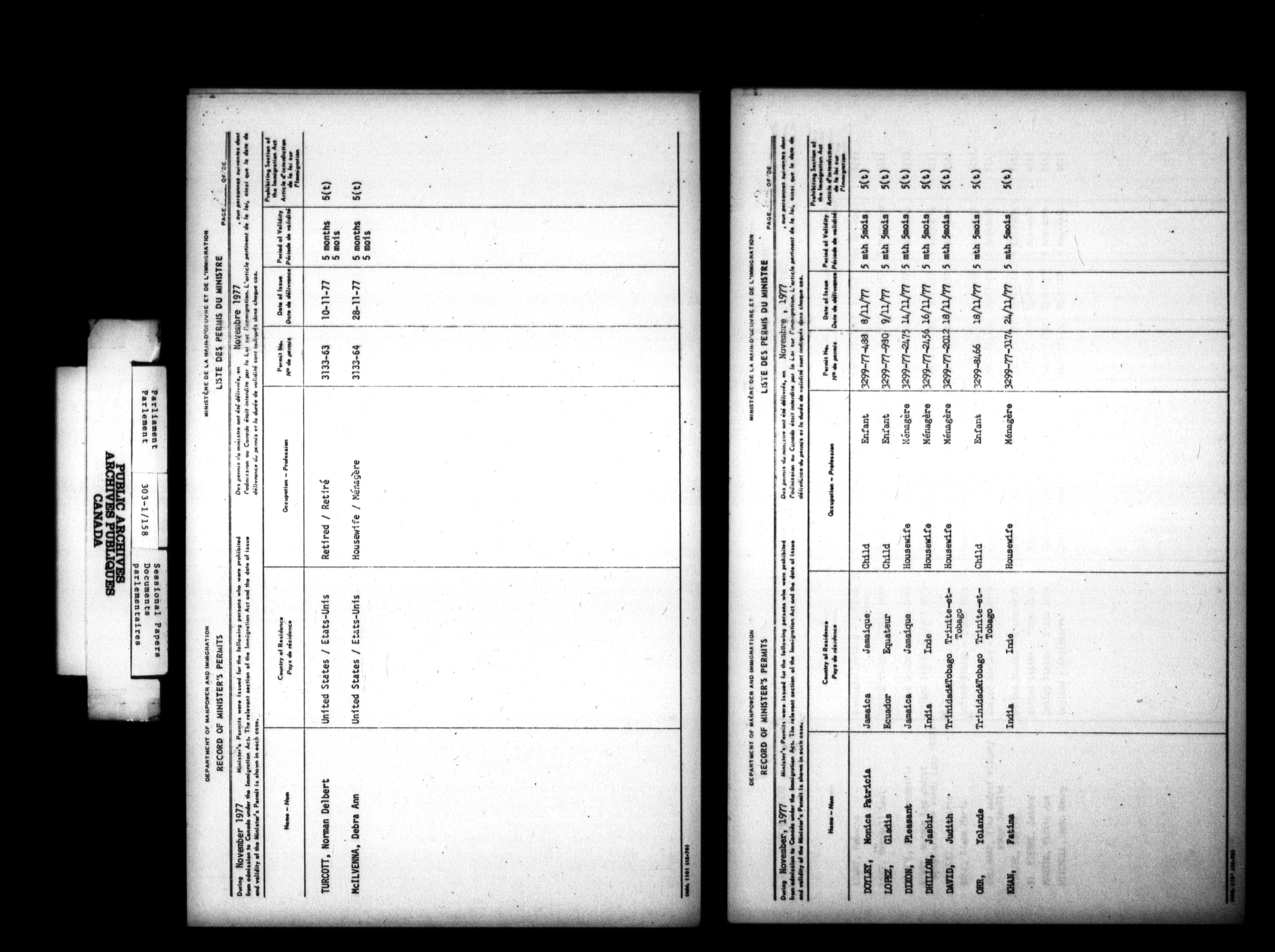 Unpublished sessional papers, 3rd Session, 30th Parliament - 4665