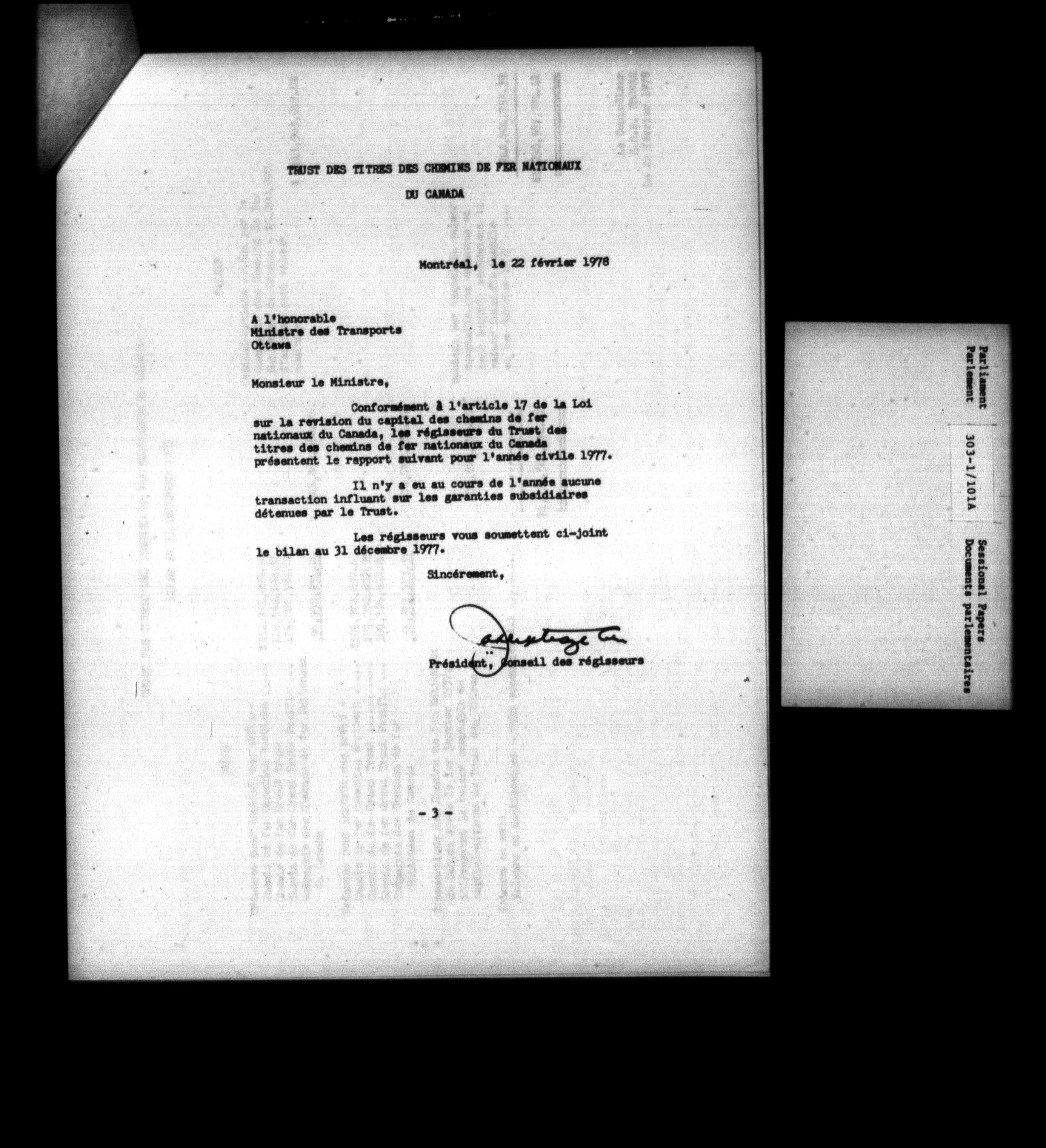 Unpublished sessional papers, 3rd Session, 30th Parliament - 4665