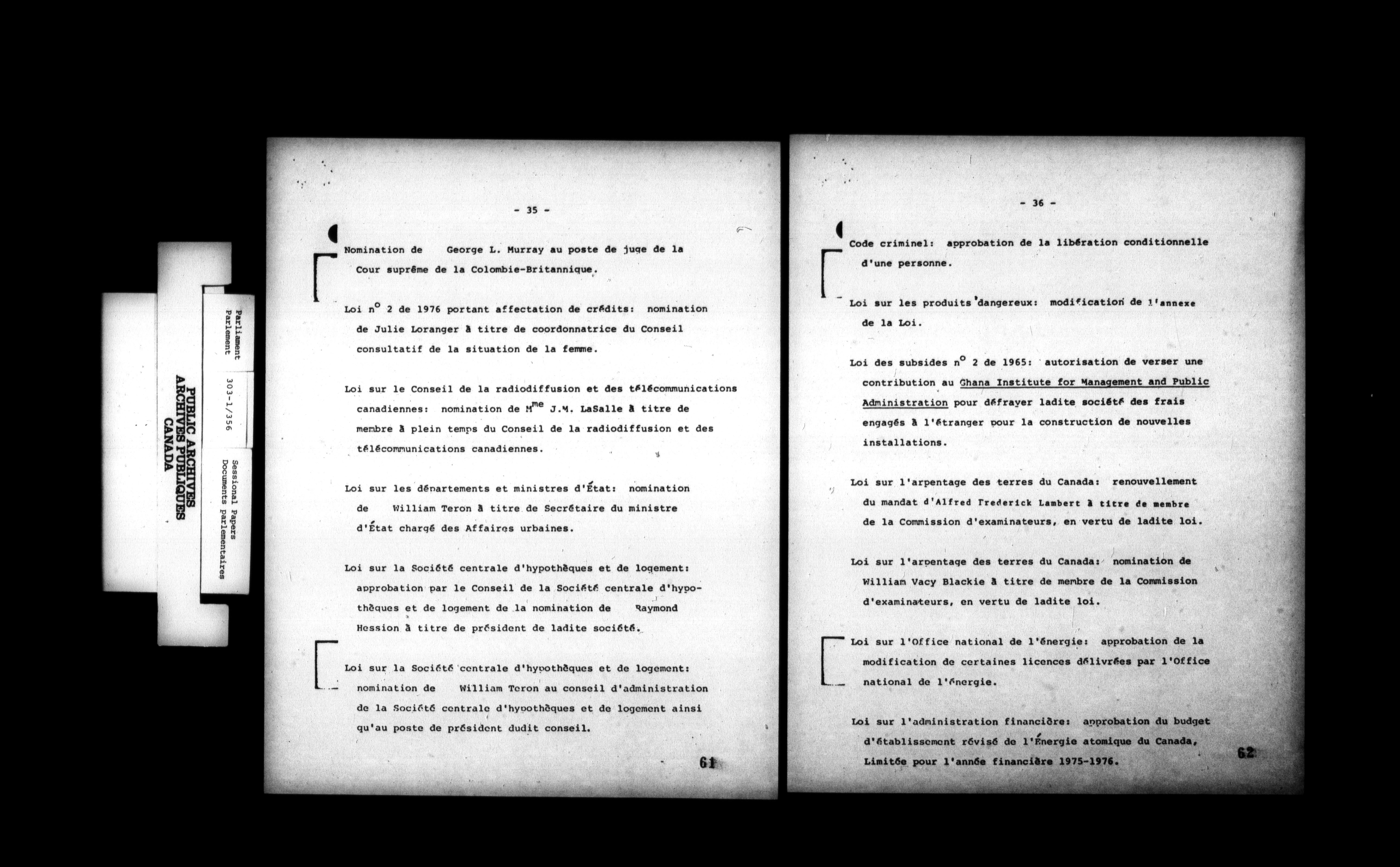 Unpublished sessional papers, 3rd Session, 30th Parliament - 4668