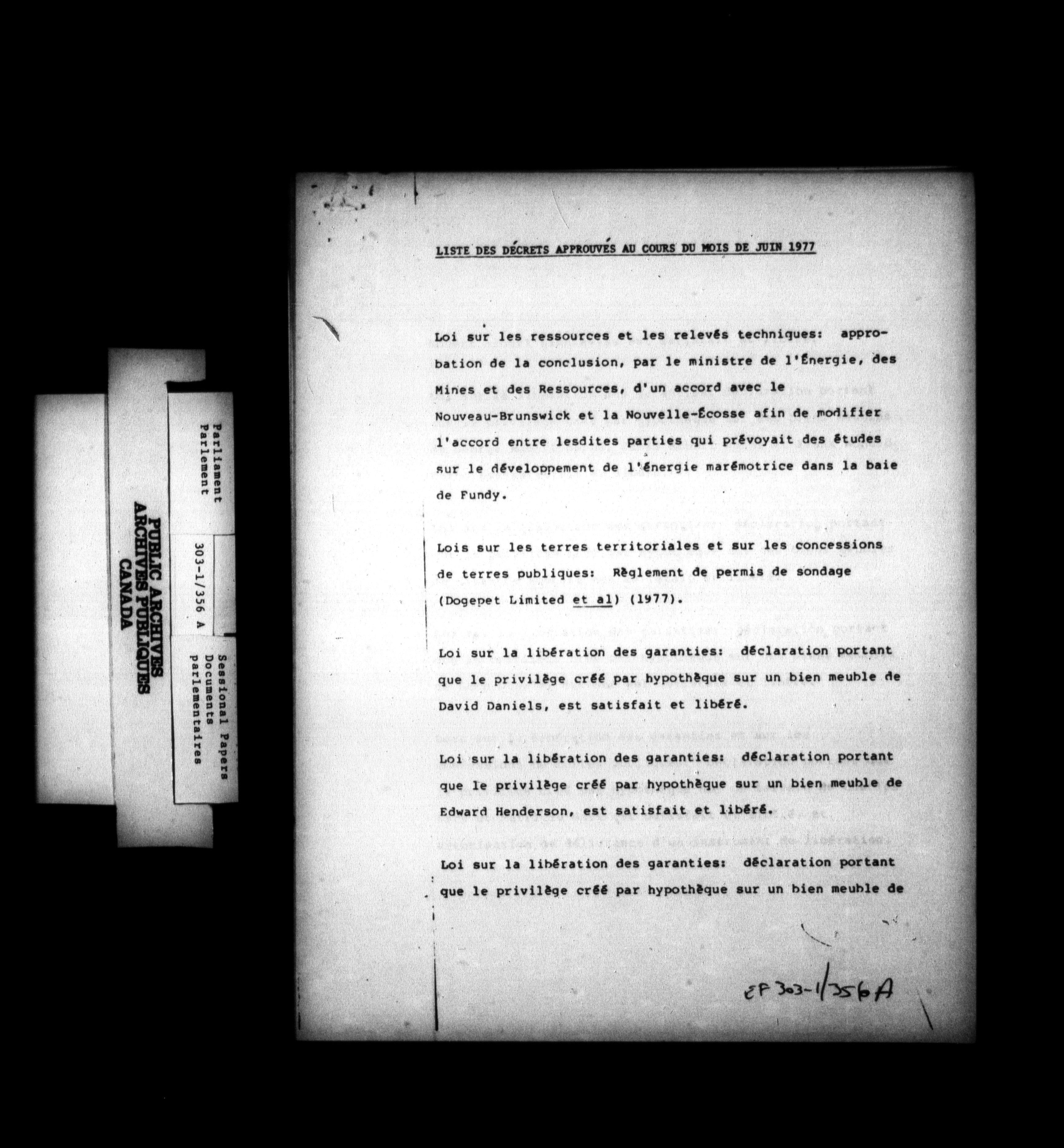 Unpublished sessional papers, 3rd Session, 30th Parliament - 4668