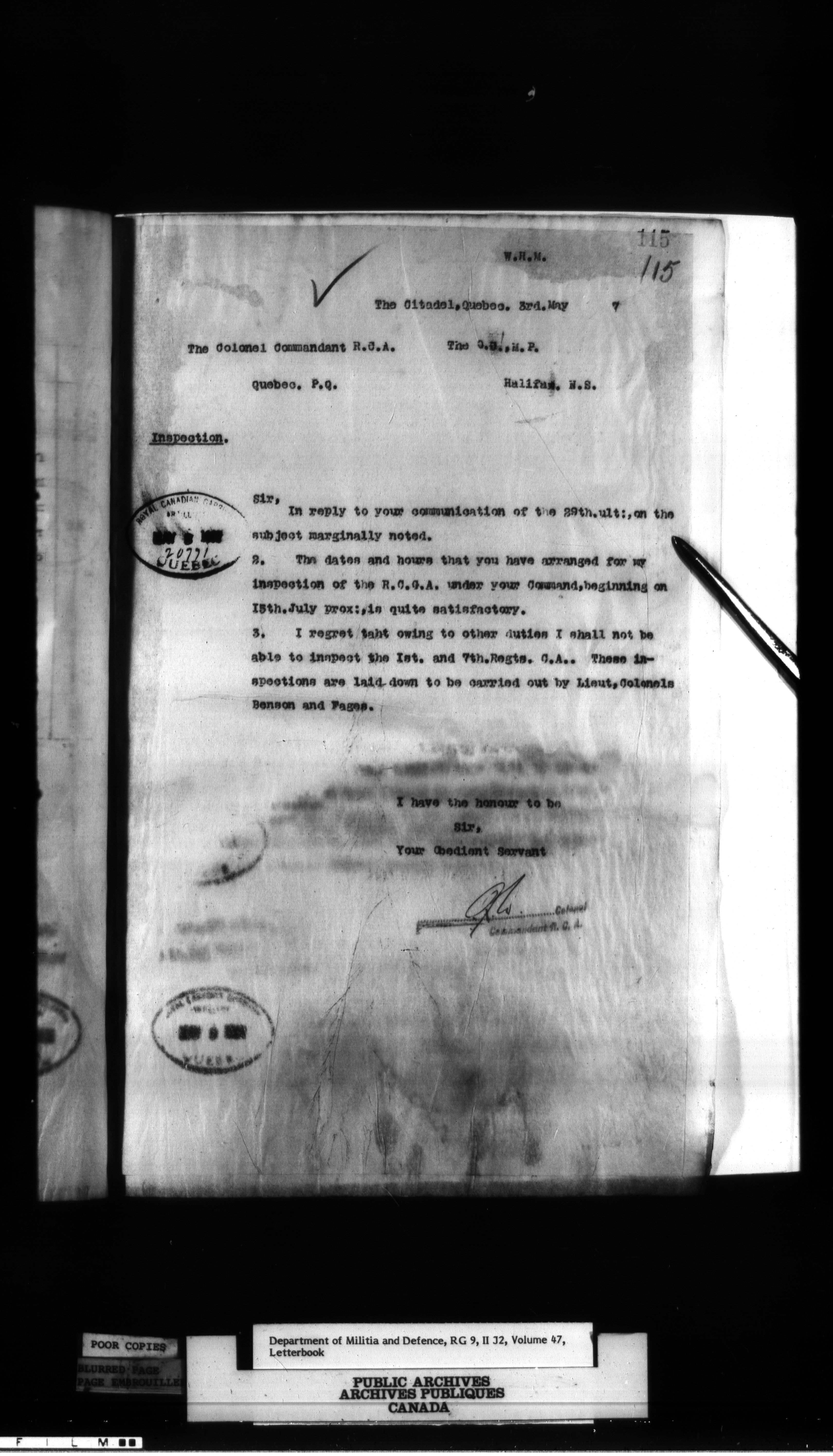 Militia and Defence : Records of artillery units at Quebec : T-467