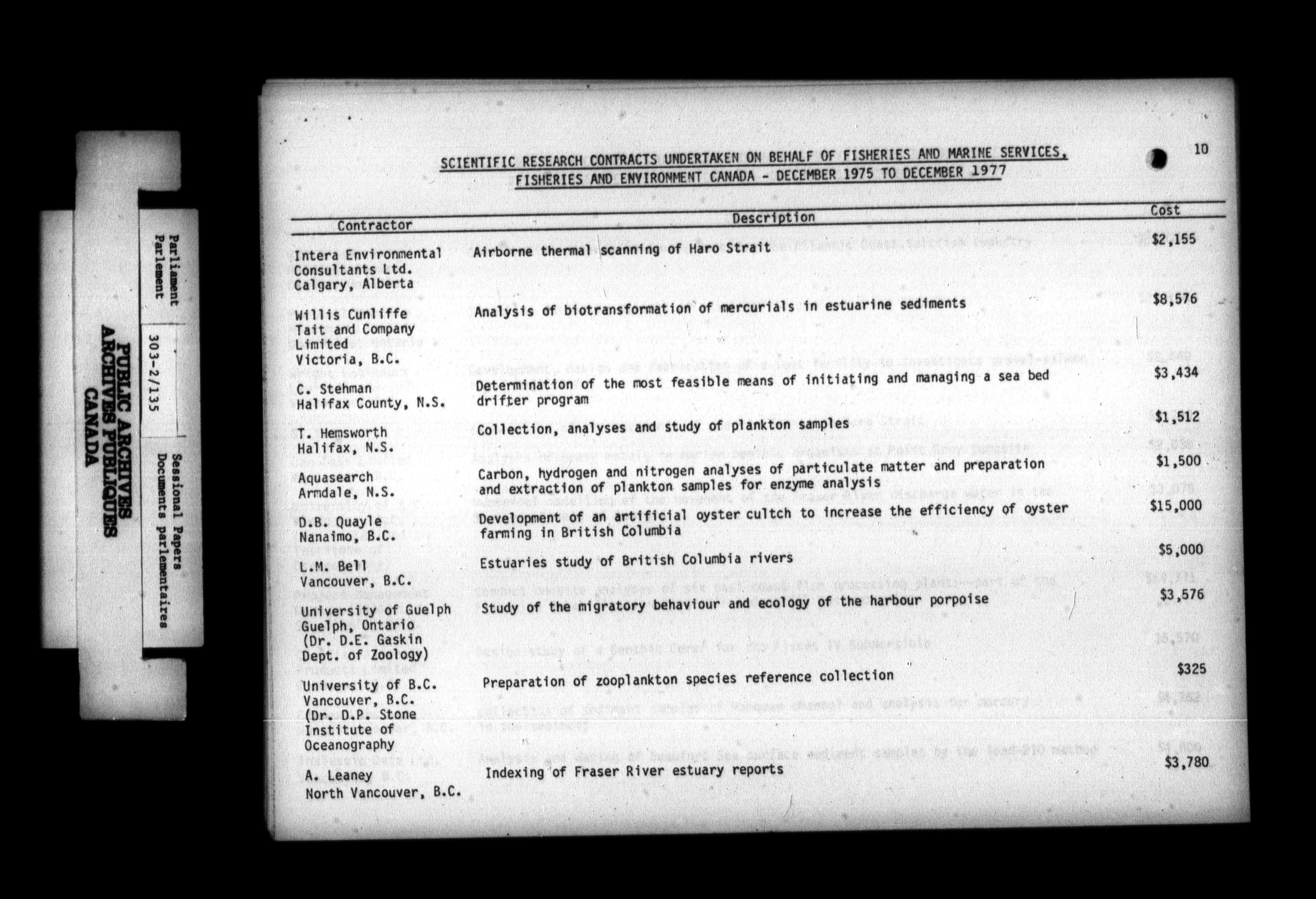 Unpublished sessional papers, 3rd Session, 30th Parliament - 4670