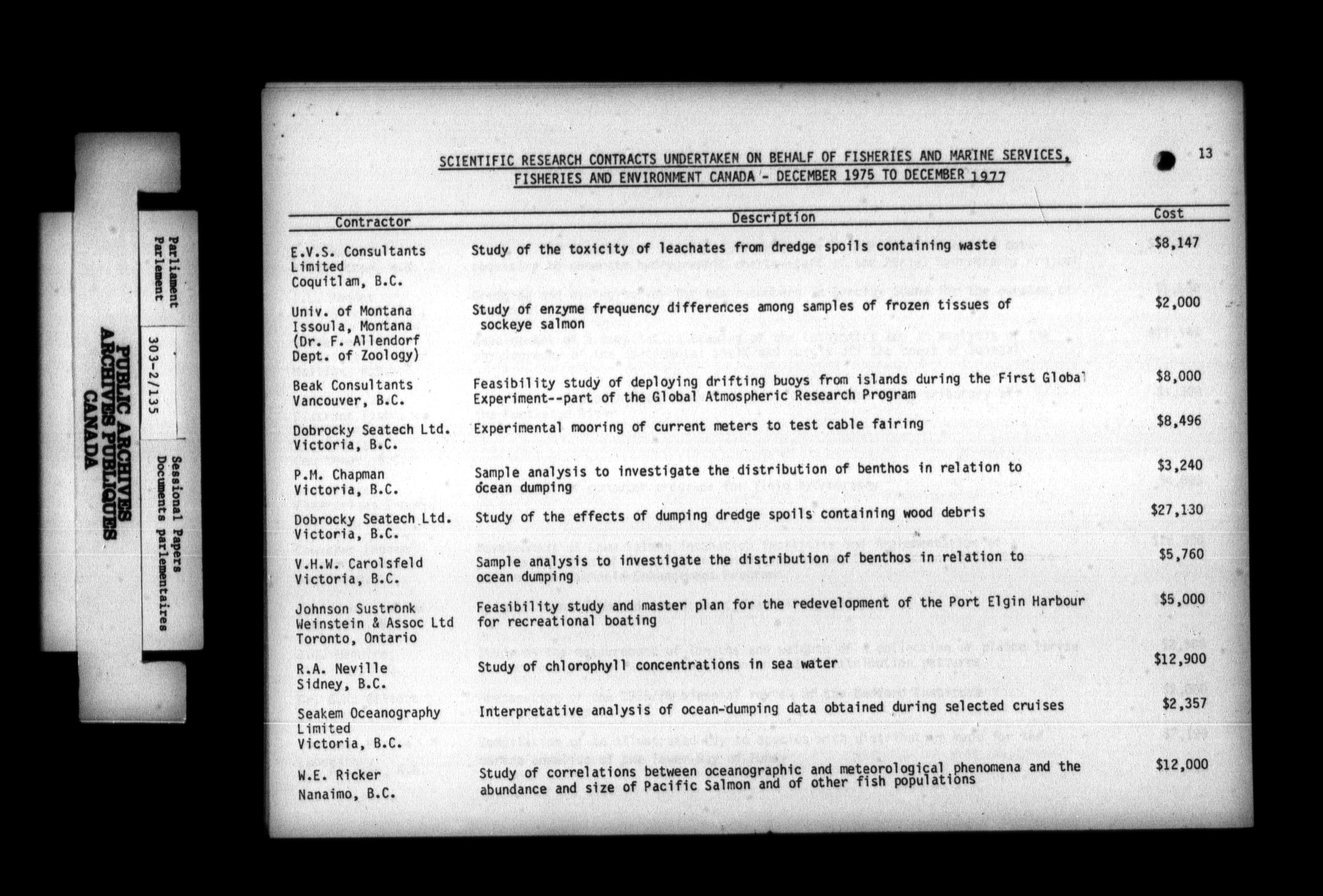 Unpublished sessional papers, 3rd Session, 30th Parliament - 4670