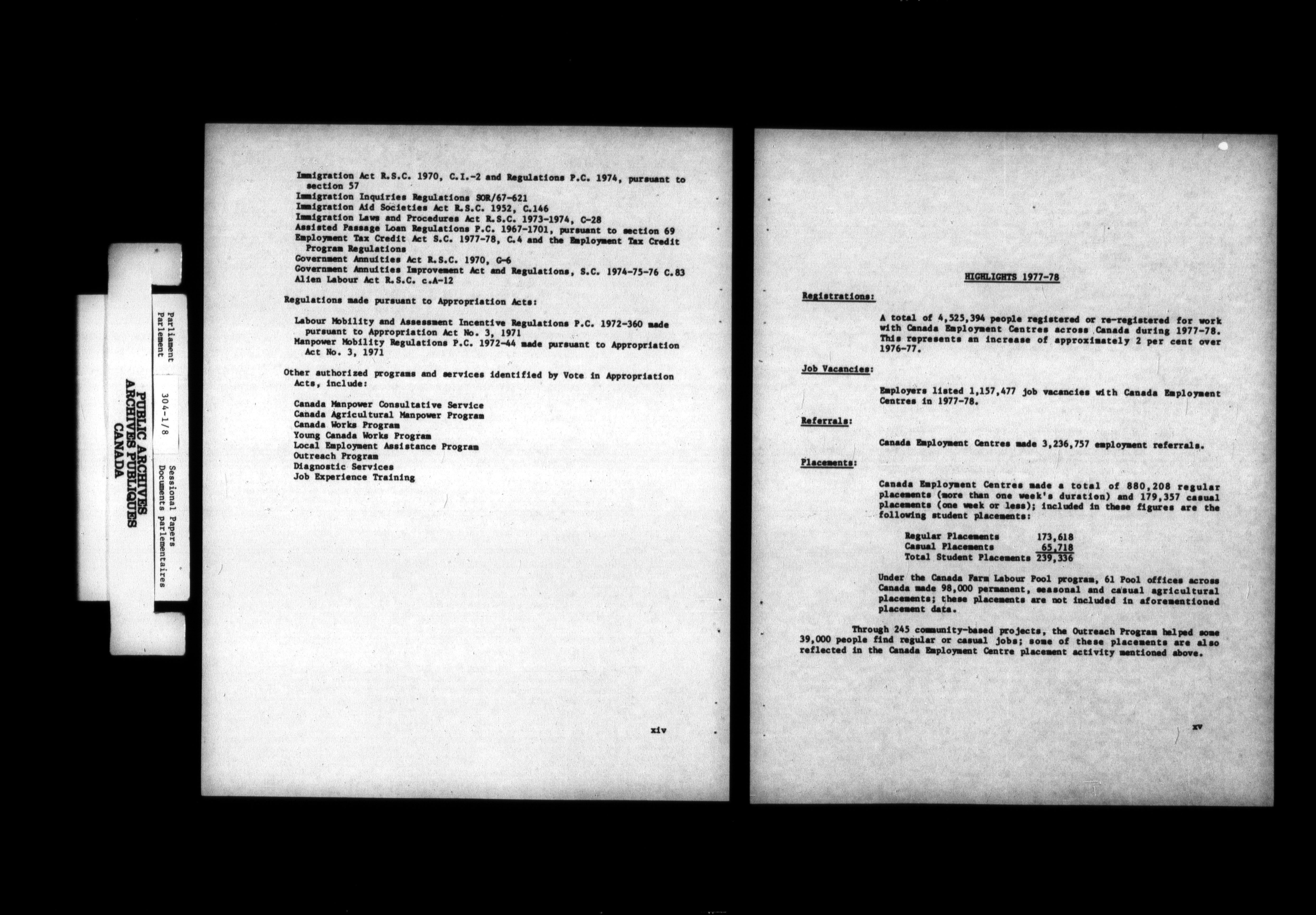 Unpublished sessional papers, 4th Session, 30th Parliament - 4676