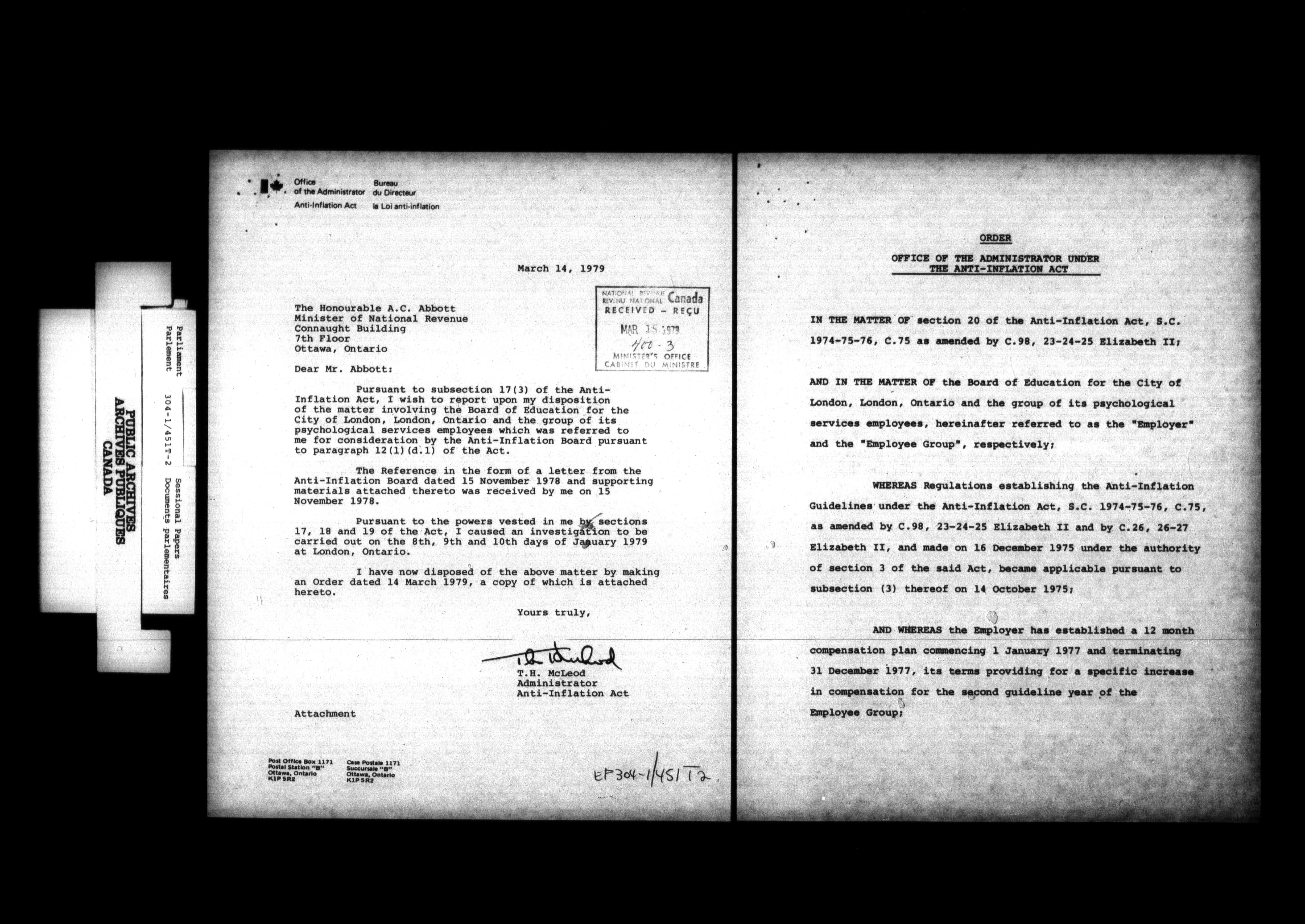 Unpublished sessional papers, 4th Session, 30th Parliament - 4679