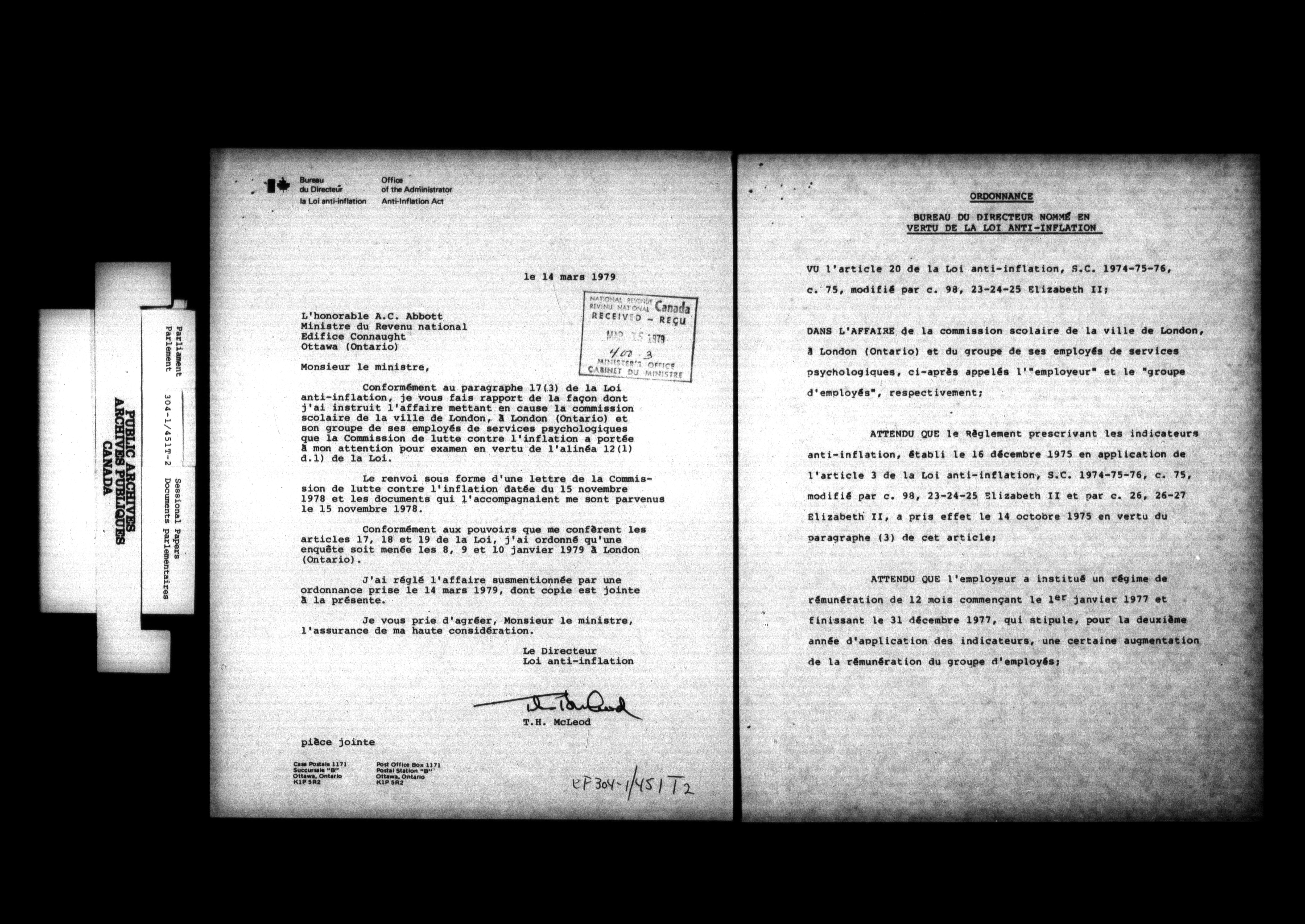 Unpublished sessional papers, 4th Session, 30th Parliament - 4679