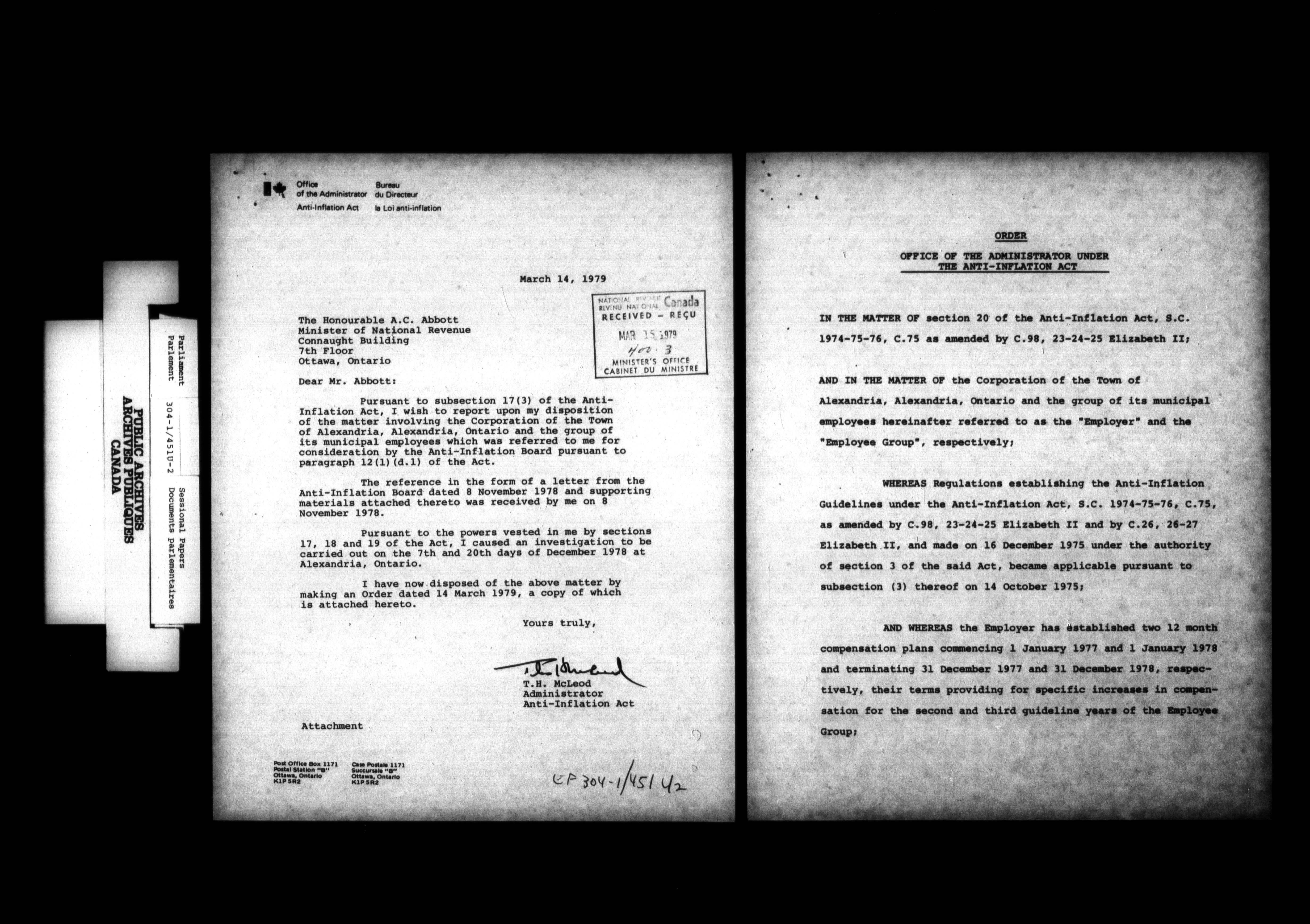 Unpublished sessional papers, 4th Session, 30th Parliament - 4679