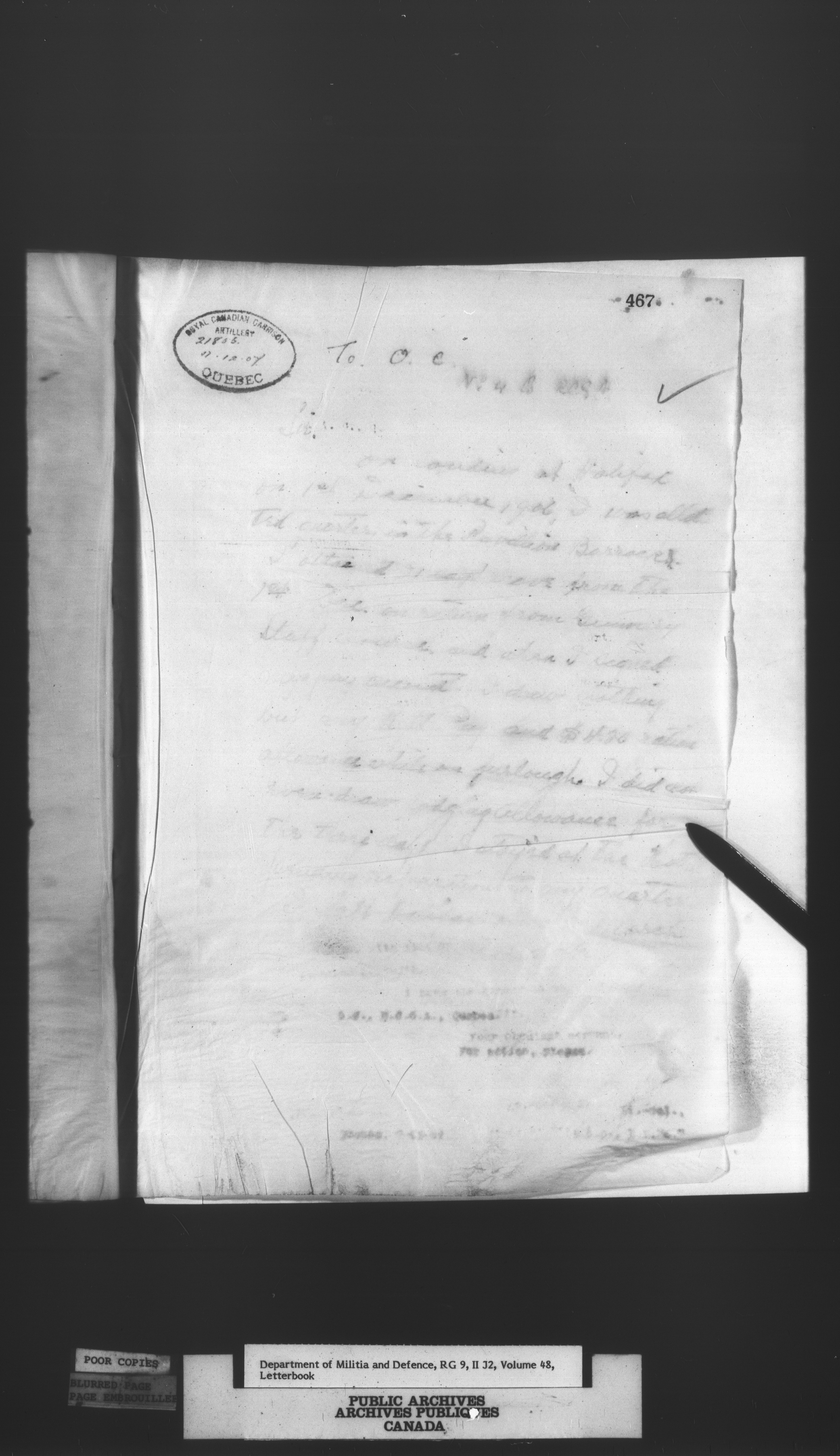 Militia and Defence : Records of artillery units at Quebec : T-468