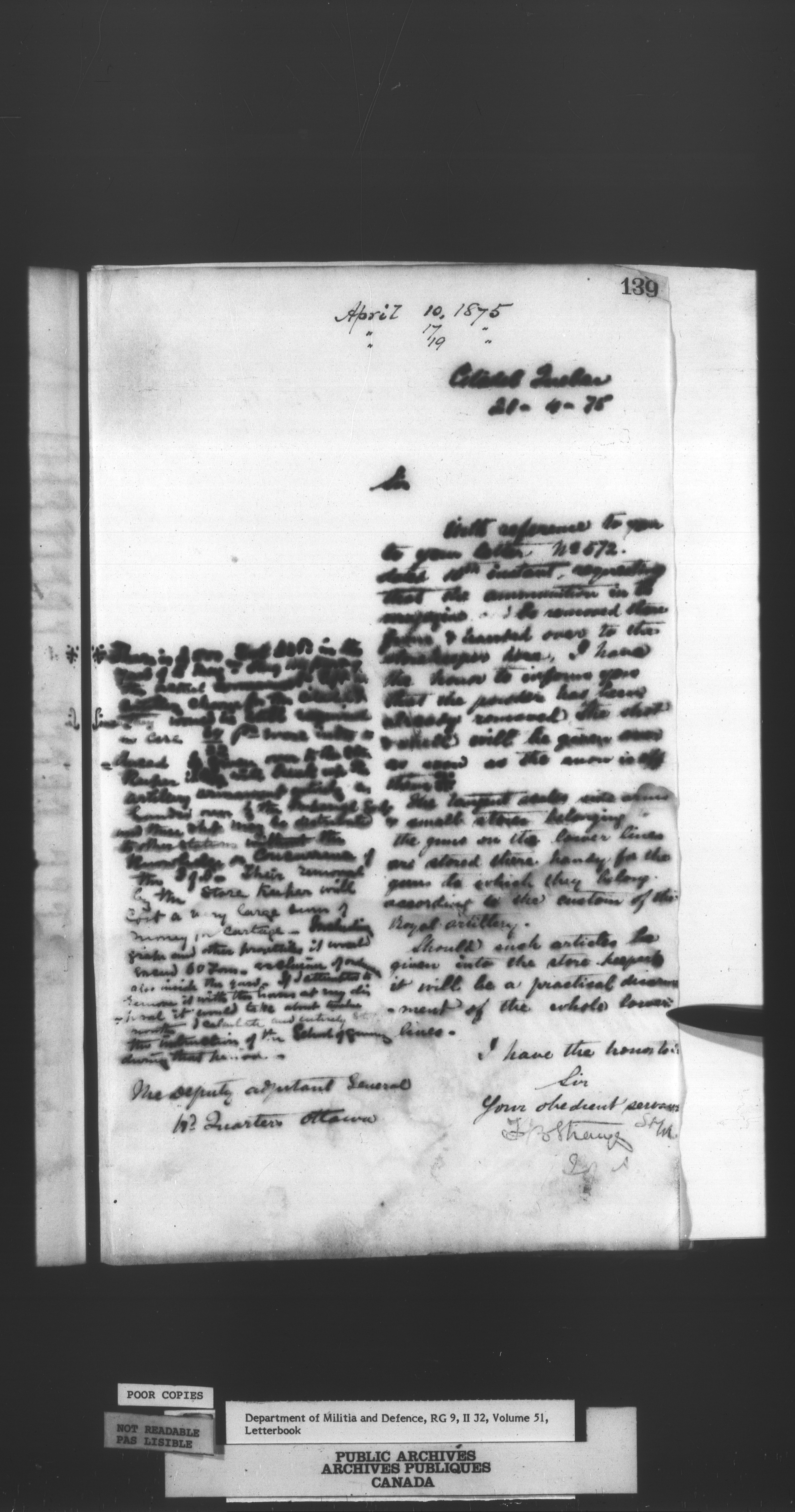 Militia and Defence : Records of artillery units at Quebec : T-475